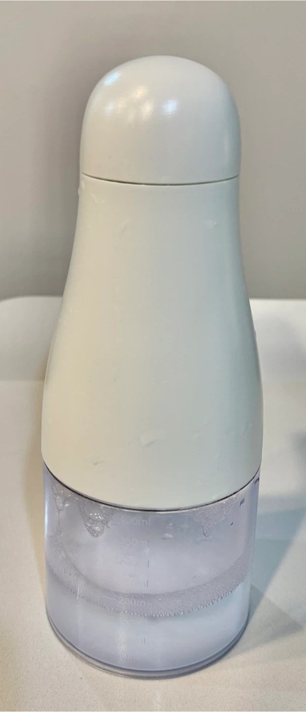 For the purpose of filming demonstration videos, some hand soap remains in the bottle; the remaining hand soap will be removed from the bottle before packaging and shipping.