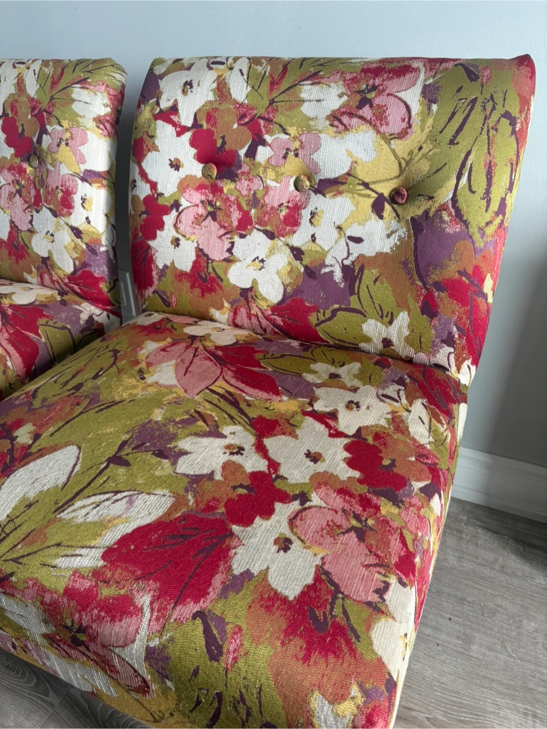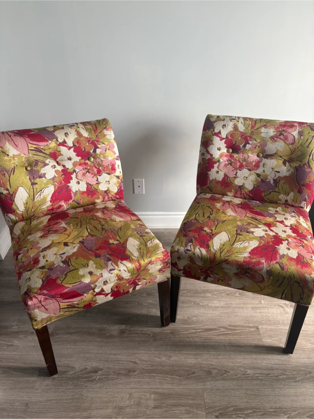 Selling a set of two accent chairs with a lovely floral pattern. They're in good condition and would add a pop of colour to any room. Perfect for a living room or bedroom!