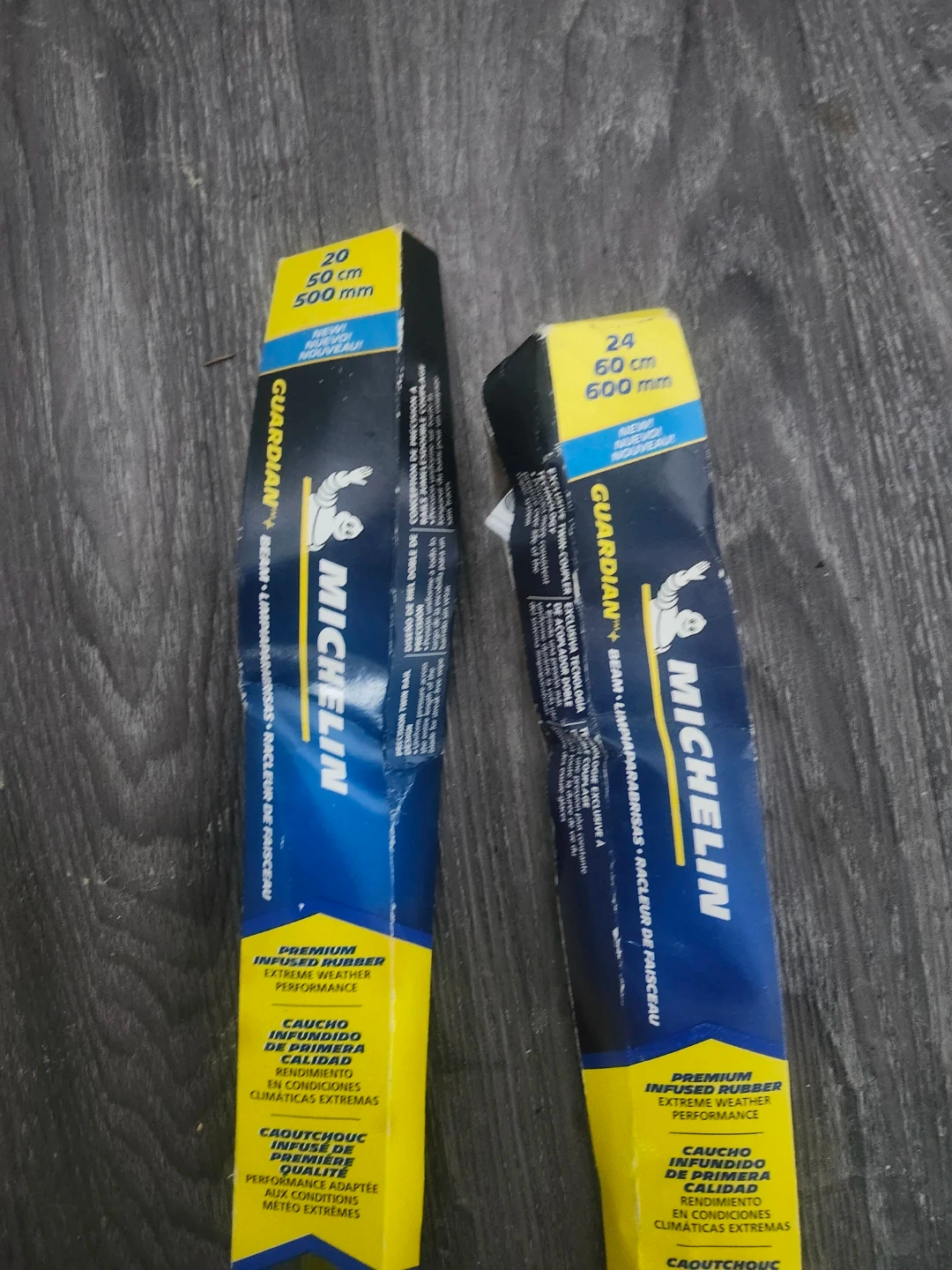 Selling a set of Michelin Guardian Beam wiper blades. One is 20 inches (50 cm / 500 mm) and the other is 24 inches (60 cm / 600 mm). They feature premium infused rubber for extreme weather performance