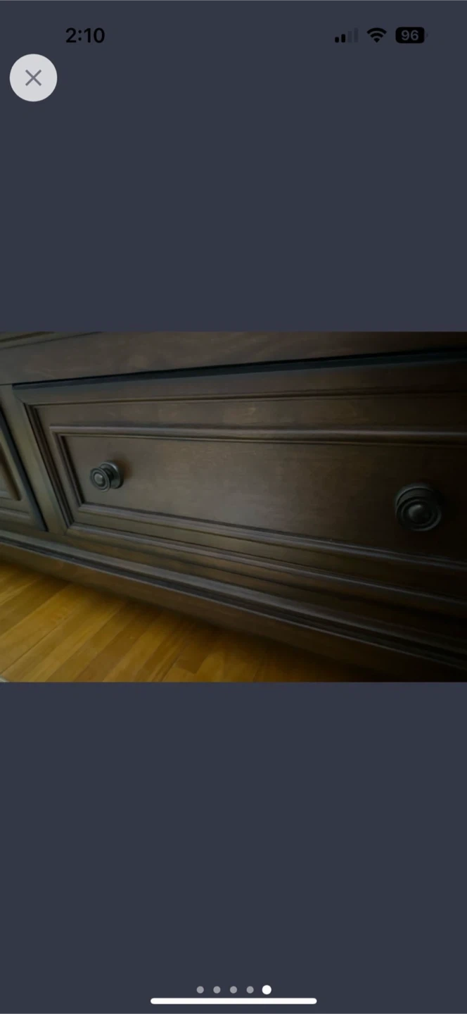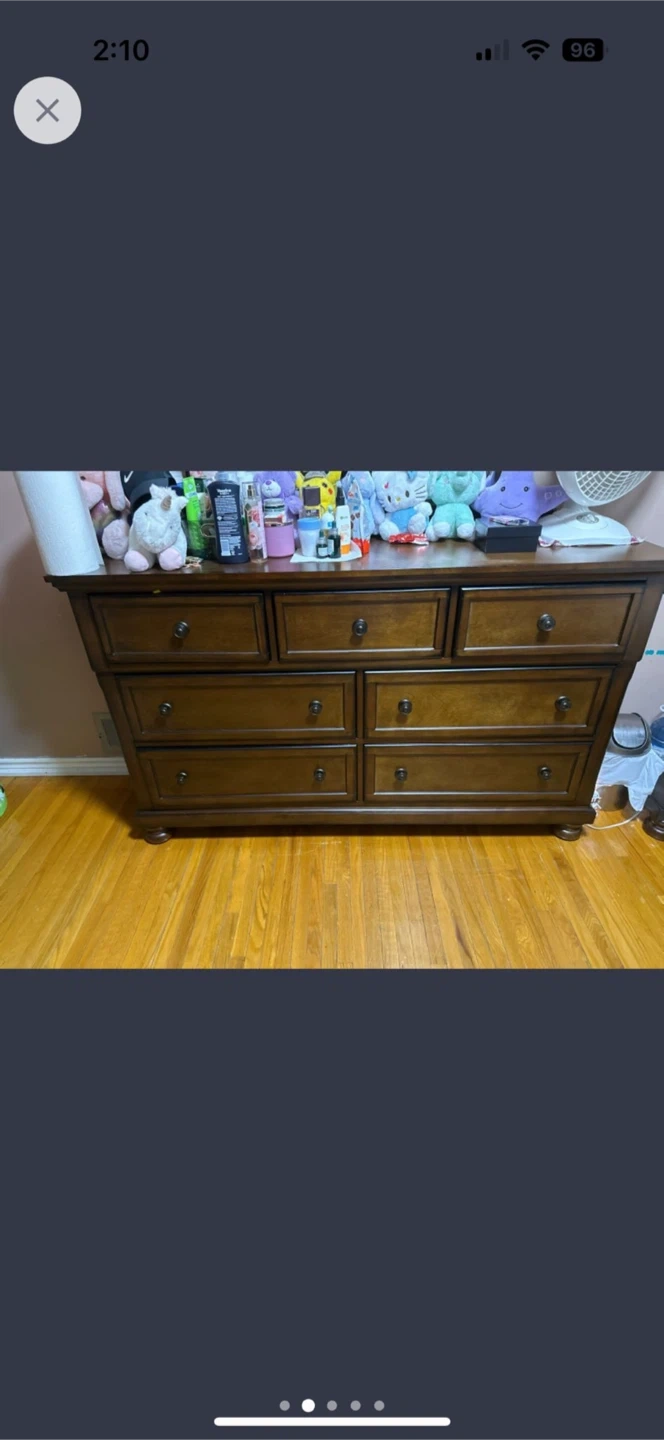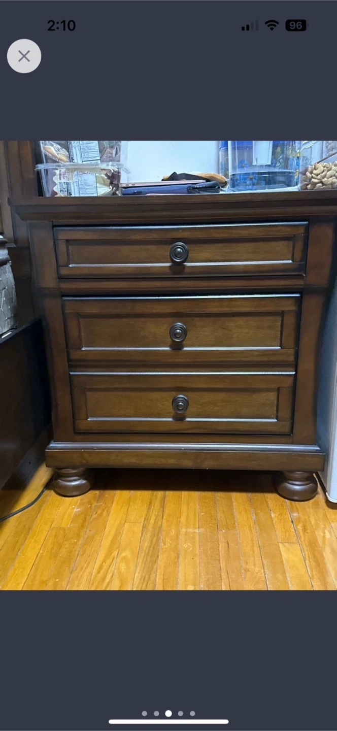 Selling a bedroom set that includes a bed frame, dresser, nightstand, and chest of drawers. All pieces are in good condition and have a matching dark wood finish. Perfect for furnishing a bedroom with a classic and elegant look!
