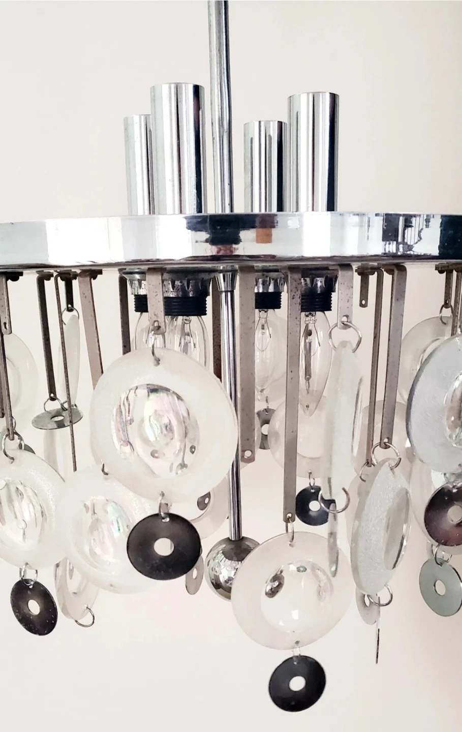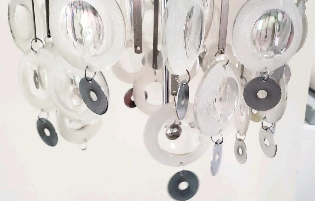 1) CIRCA 1960's - Glass and Chrome - Sciolari - Ceiling Light Fixture - 4 Bulb Ceiling Mount - Hardwired - 33" long