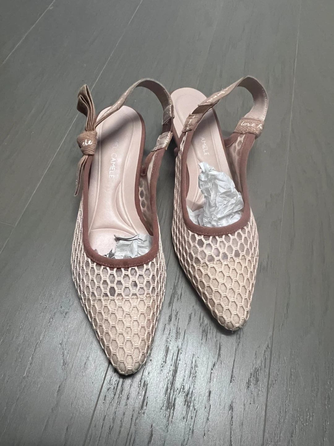 These Formel Camele heels are a stylish addition to any wardrobe! The beige color and unique net design make them stand out. Dior inspired-