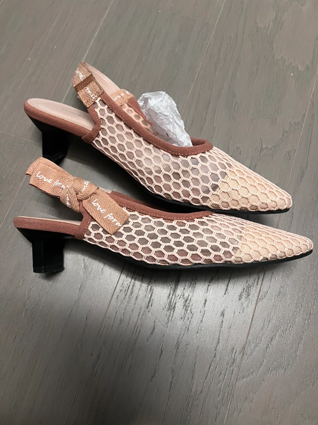 These Formel Camele heels are a stylish addition to any wardrobe! The beige color and unique net design make them stand out. Dior inspired-