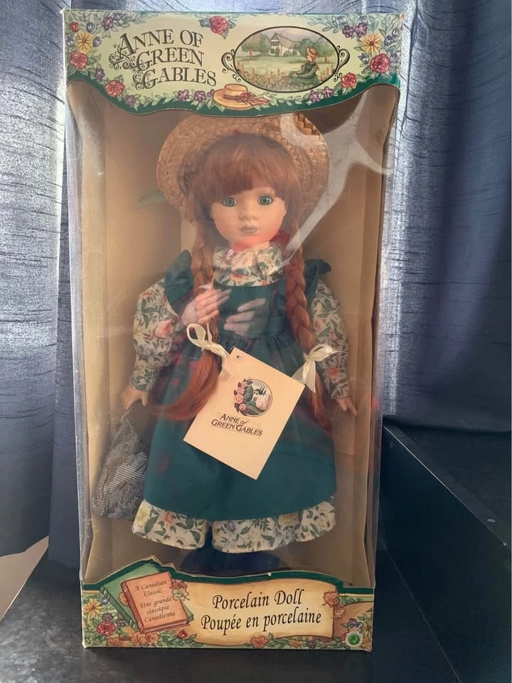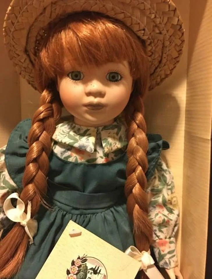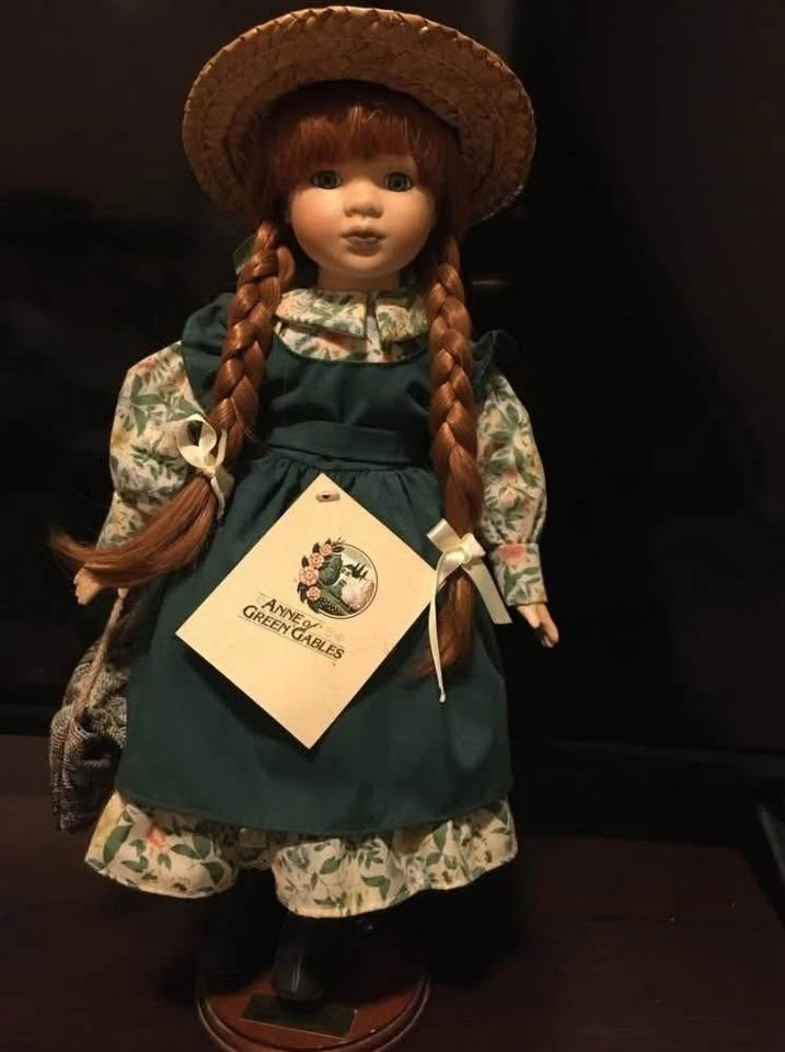 By Canadian company Avonlea Traditions inc. Doll is 16” and comes with wooden/metal stand that has a plaque that says Anne of Green Gables.