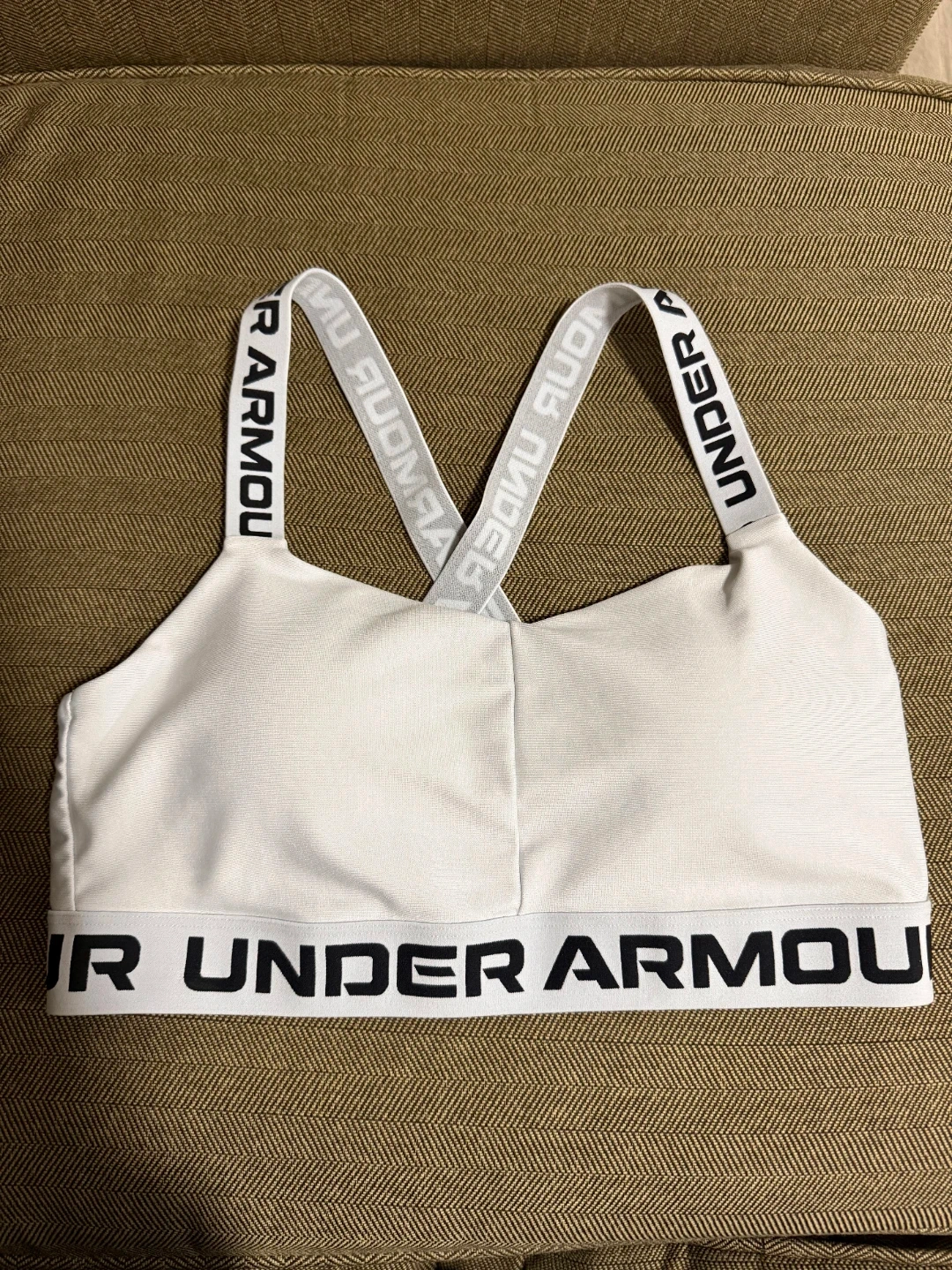 Under Armour Crossback Low Women's Sports Bra in white.