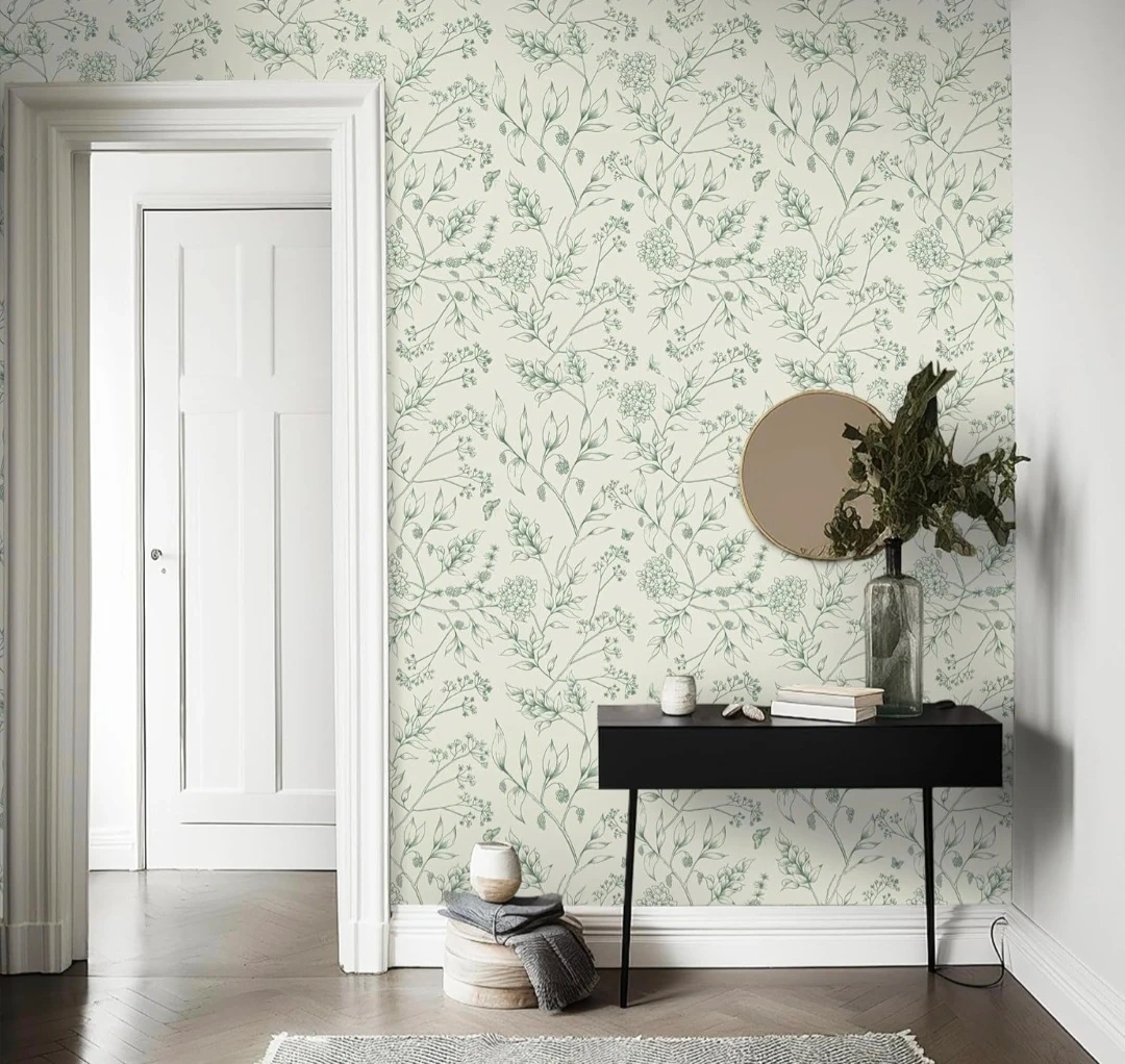 New. Peel & Stick Wallpaper. 17.3"x78.7". It features a lovely floral design in a soft, neutral colour palette. This wallpaper would be perfect for adding a touch of nature to any room in your home!