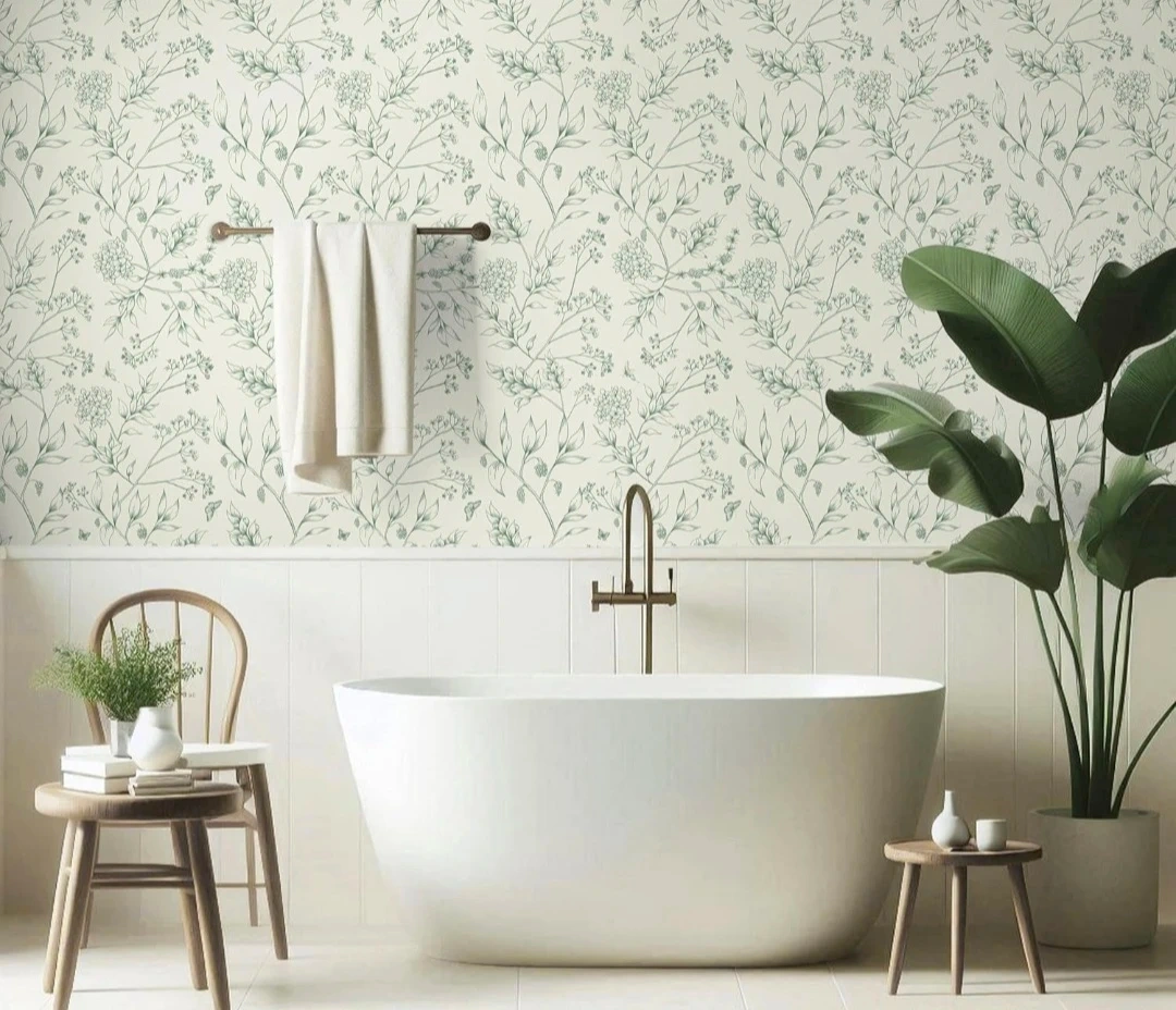New. Peel & Stick Wallpaper. 17.3"x78.7". It features a lovely floral design in a soft, neutral colour palette. This wallpaper would be perfect for adding a touch of nature to any room in your home!