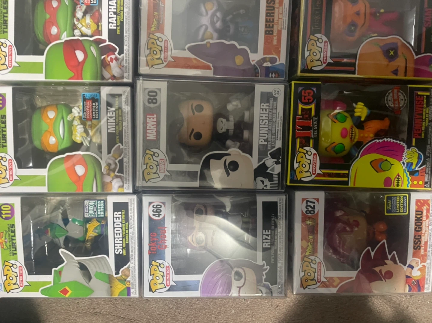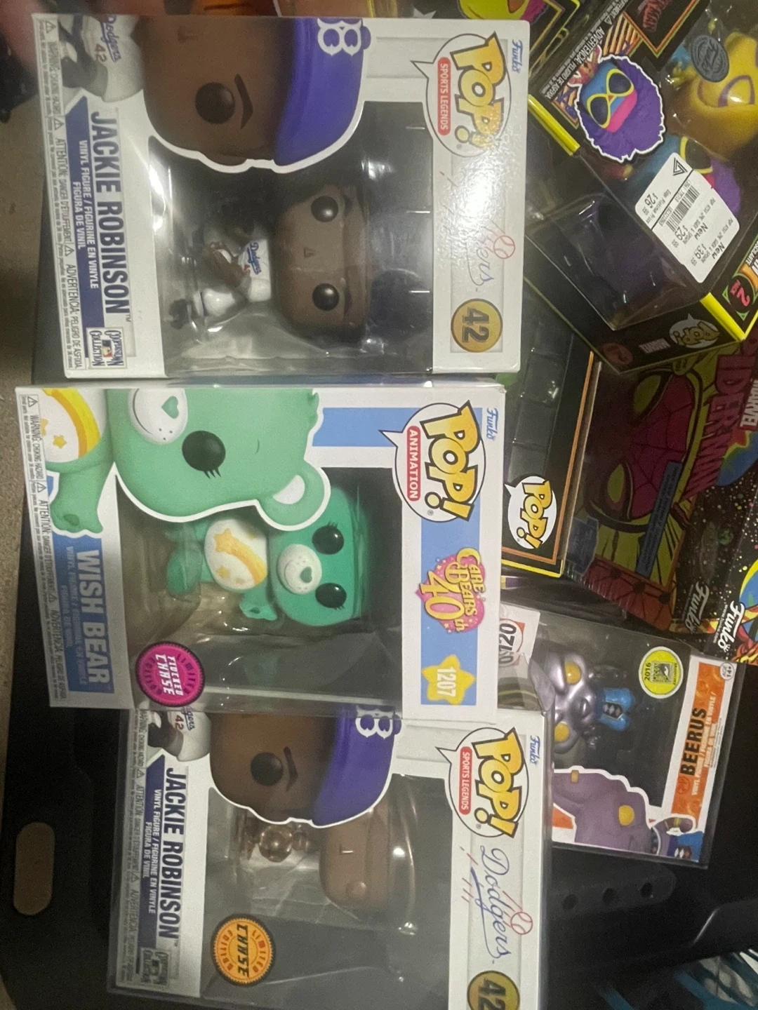 Selling a variety of Funko Pop! vinyl figures. Great for collectors! There are various characters available, including Jackie Robinson, Wish Bear, Punisher, and more! All are in their original boxes.