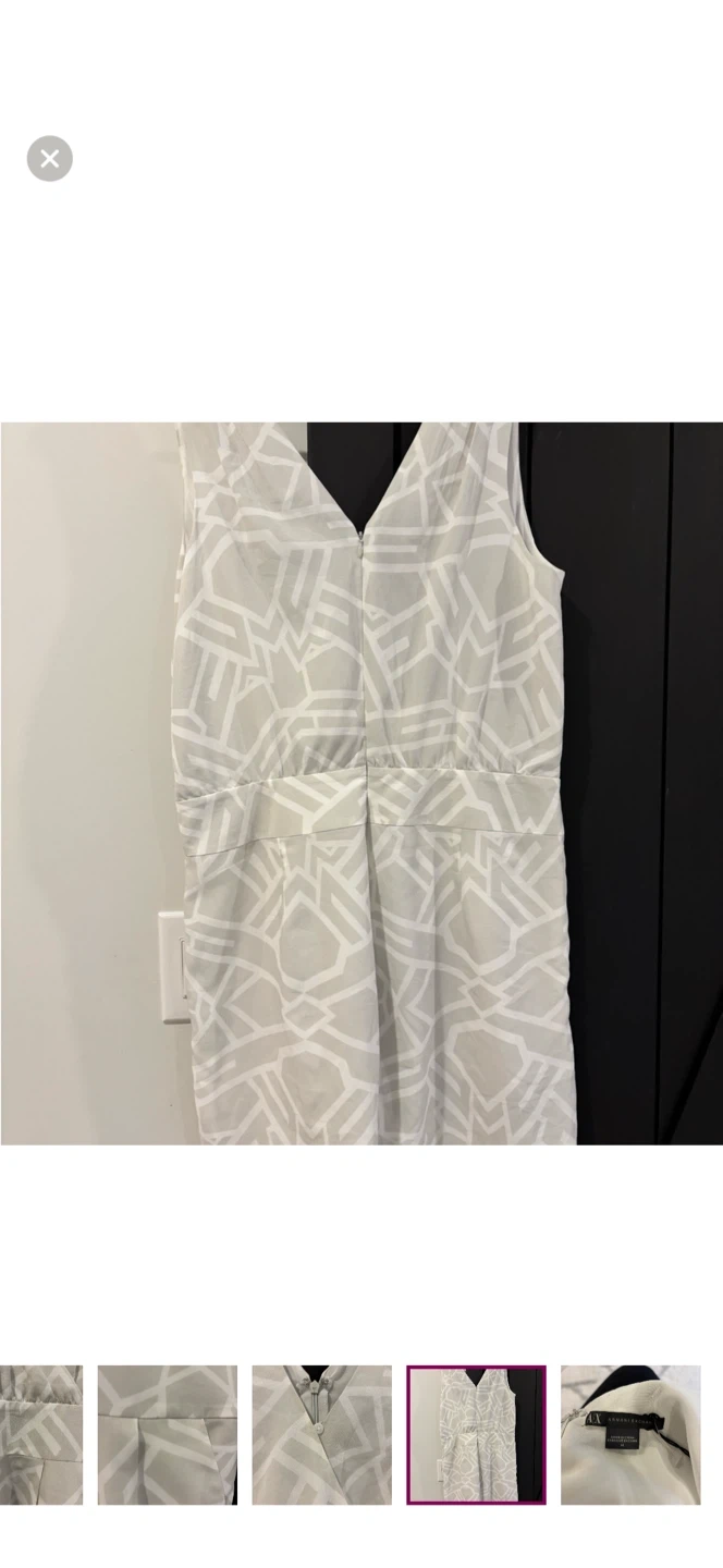 Selling an Armani Exchange romper in size 14. It features a unique geometric pattern and a flattering v-neck design. Perfect for a casual day out or a summer event!