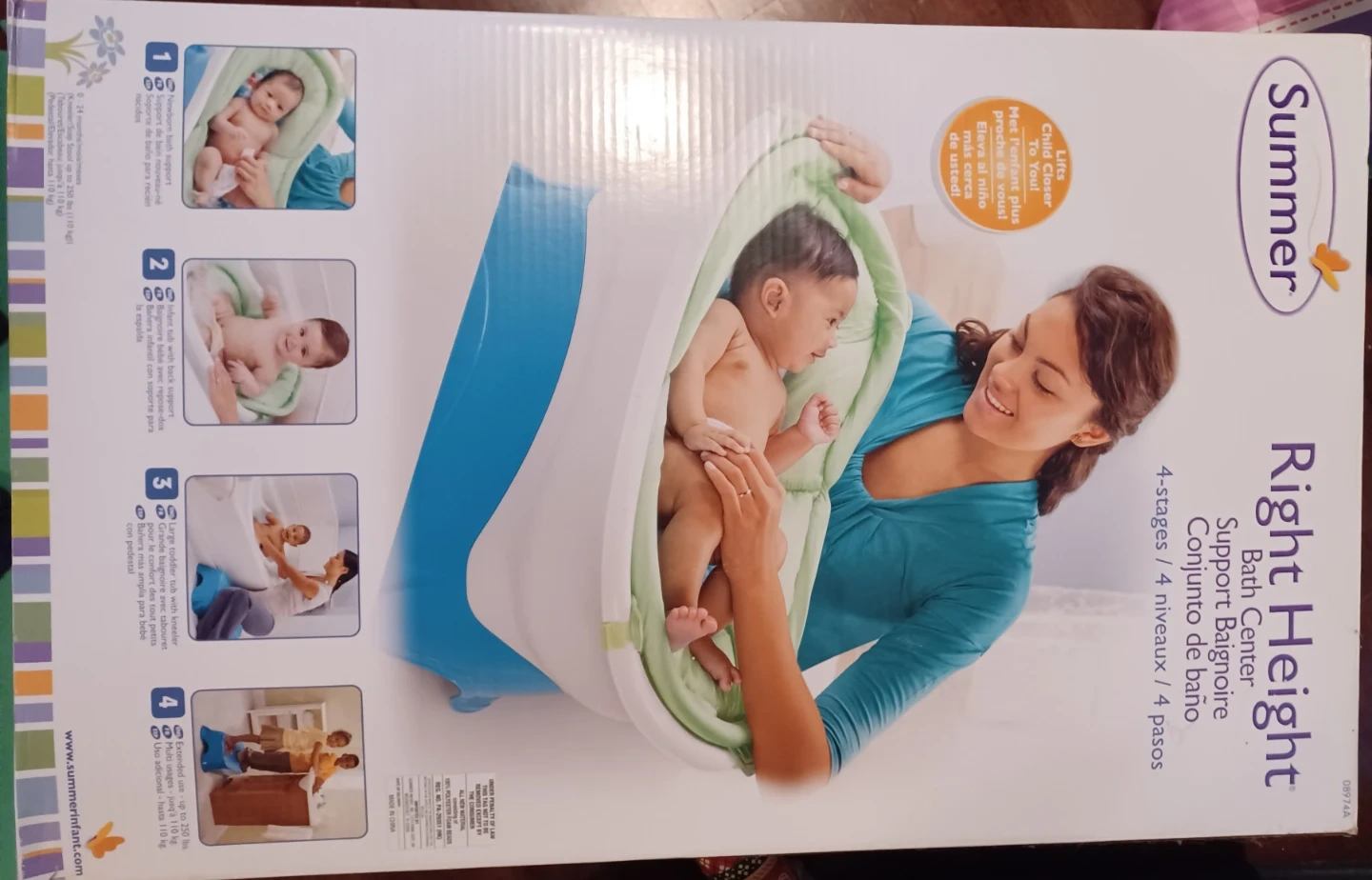 Selling a Summer Right Height Bath Center. It's a 4-stage bath center designed to grow with your baby. The bath center includes a newborn support, infant tub, toddler tub with kneeler, and extended use as a step stool. Great for making bath time easier as your little one grows!