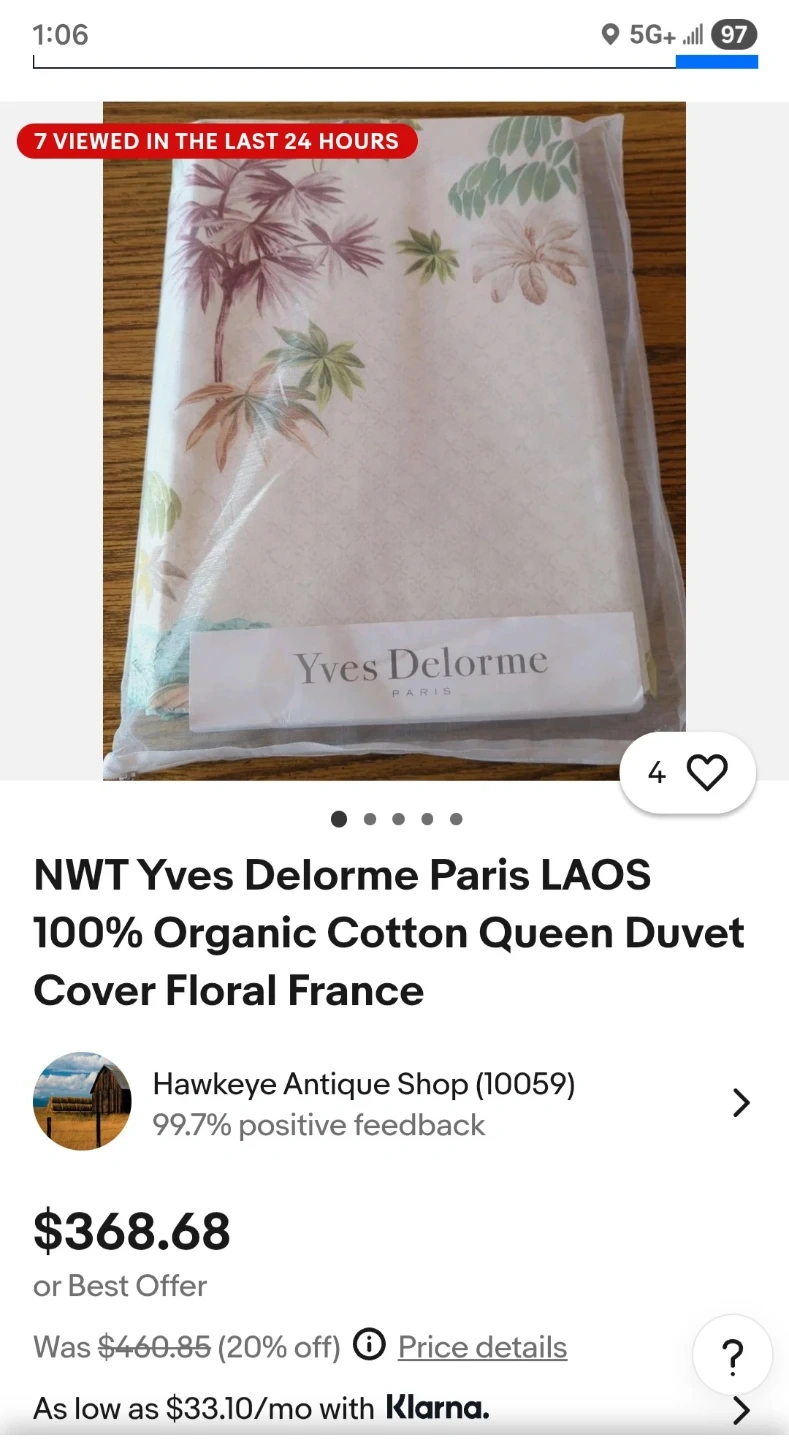 Yves Delorme Paris duvet with zipper. It's a queen size floral design. Made of 100% organic cotton