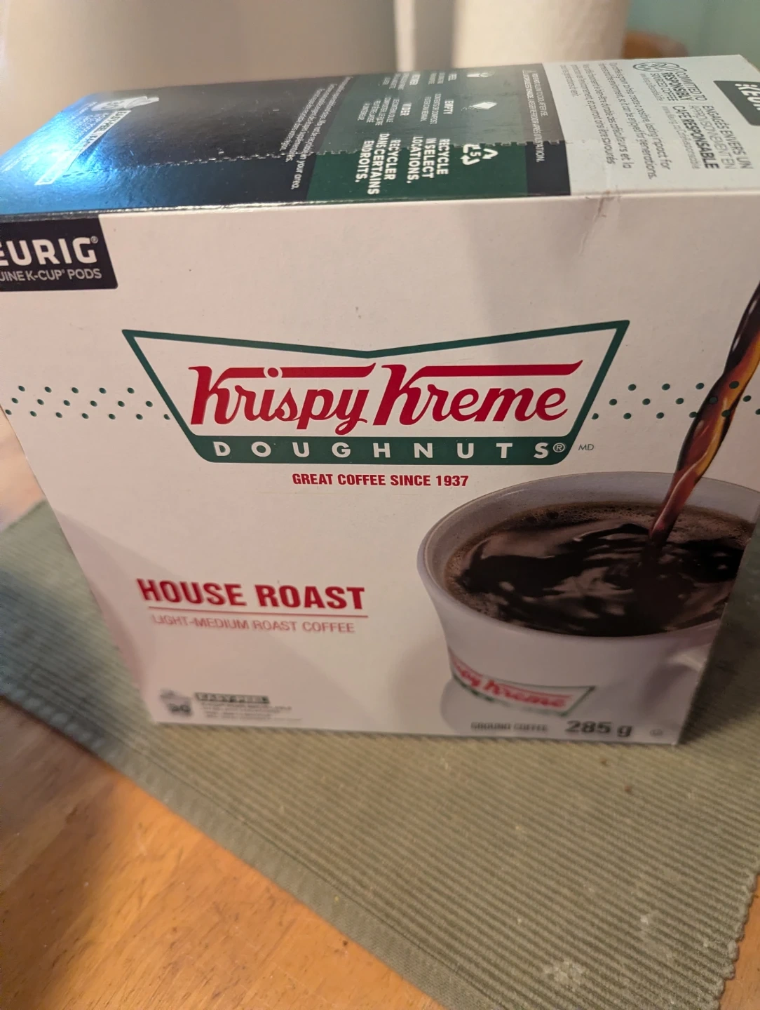 Selling a box of Krispy Kreme House Roast light-medium roast coffee. Great coffee since 1937! Sealed. Never opened. Just bought beginning of December 2025
