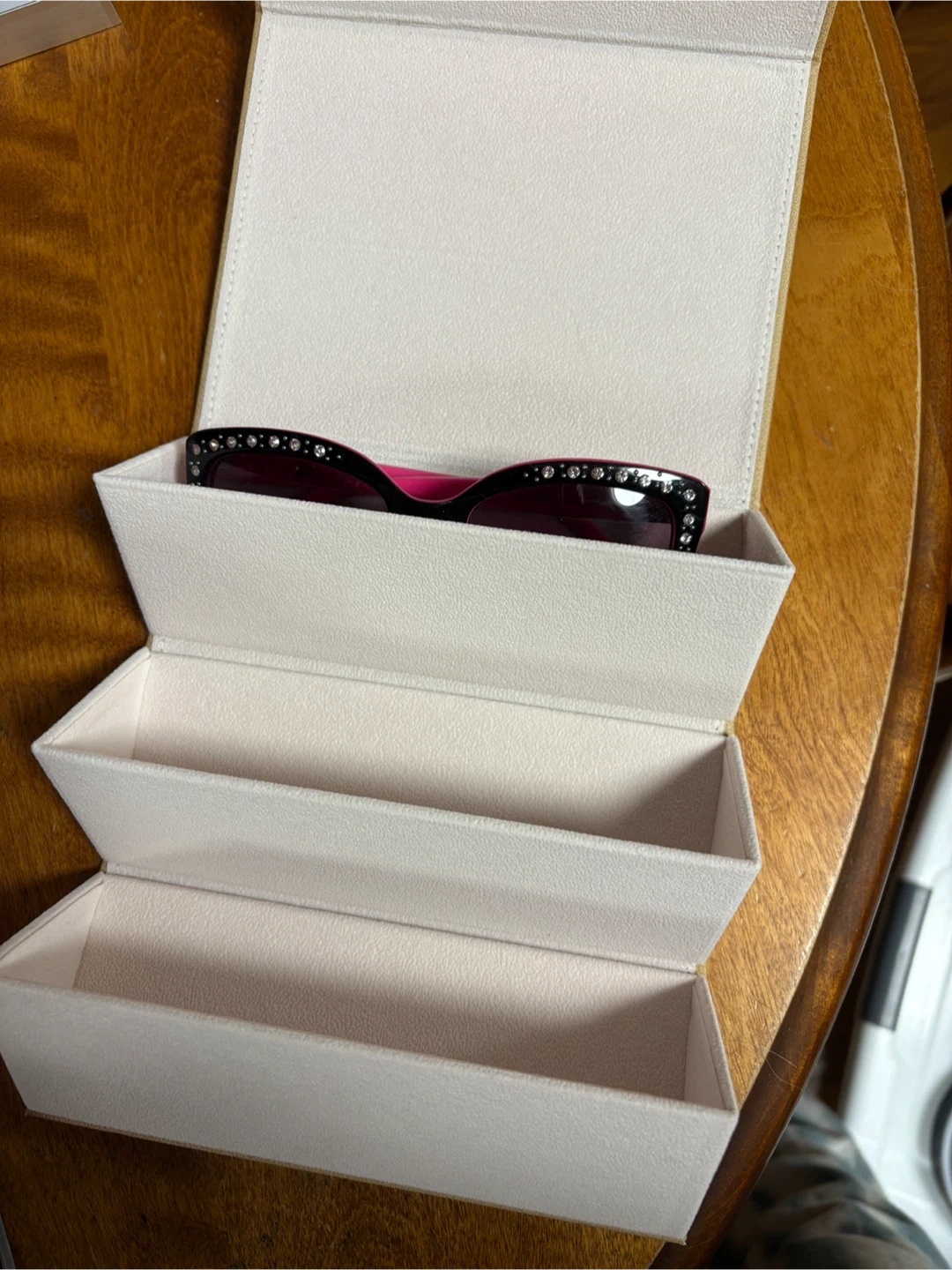 Sancia Australia sunglasses case. It's a stylish way to store and organize your sunglasses! The case is brand new never used, holds 3 pairs of glasses. Perfect for travel..