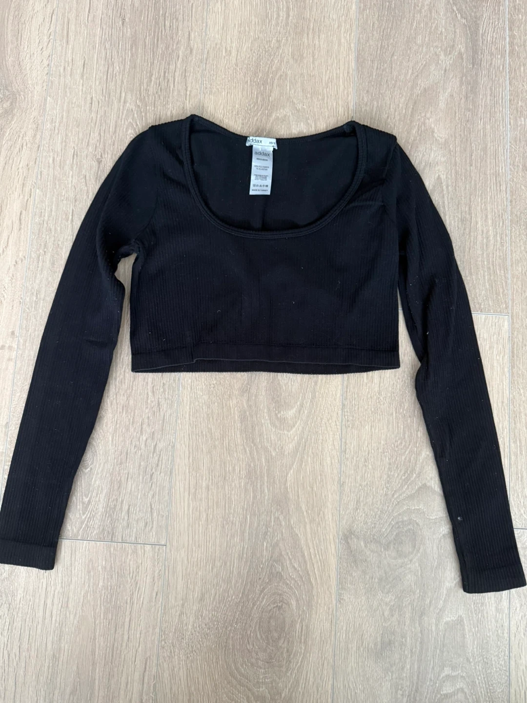 This is a cute black long sleeve crop top from Addax! It's a size XS/S and made of 93% polyamide and 7% elastane. It's in great condition and ready for a new wardrobe. Only worn once or twice in great condition.