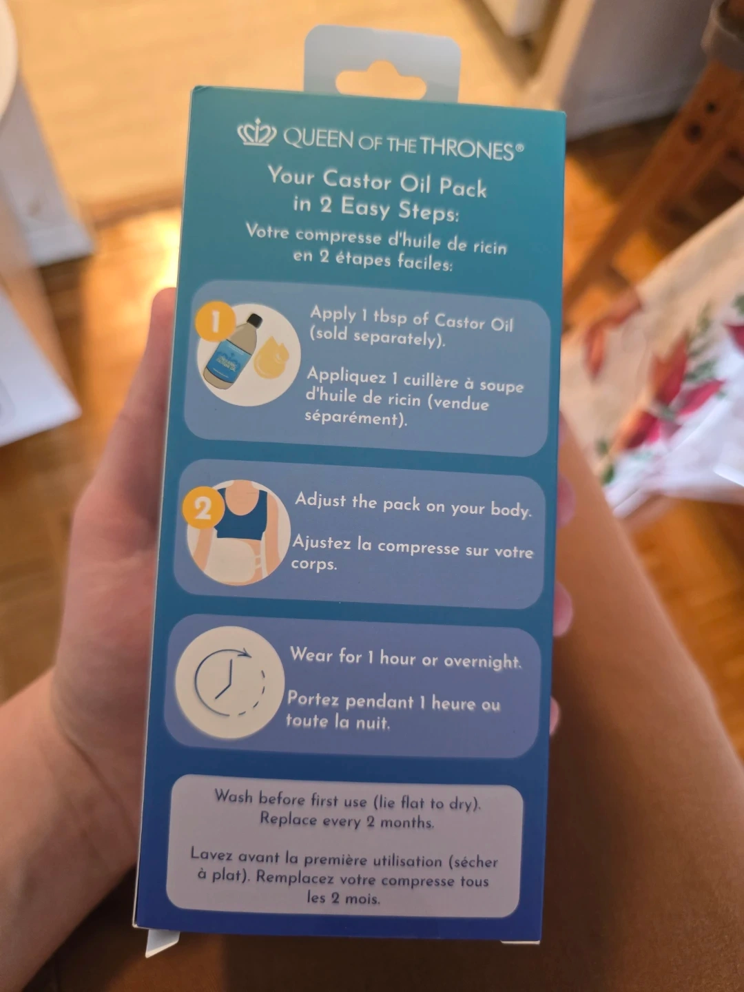 Selling a brand new Queen of the Thrones Castor Oil Pack! It's designed for liver support and is made in Canada. This pack features an inner layer of organic cotton flannel and stretchy nylon straps for a comfortable fit. One size fits all! Wash before first use and replace every 2 months