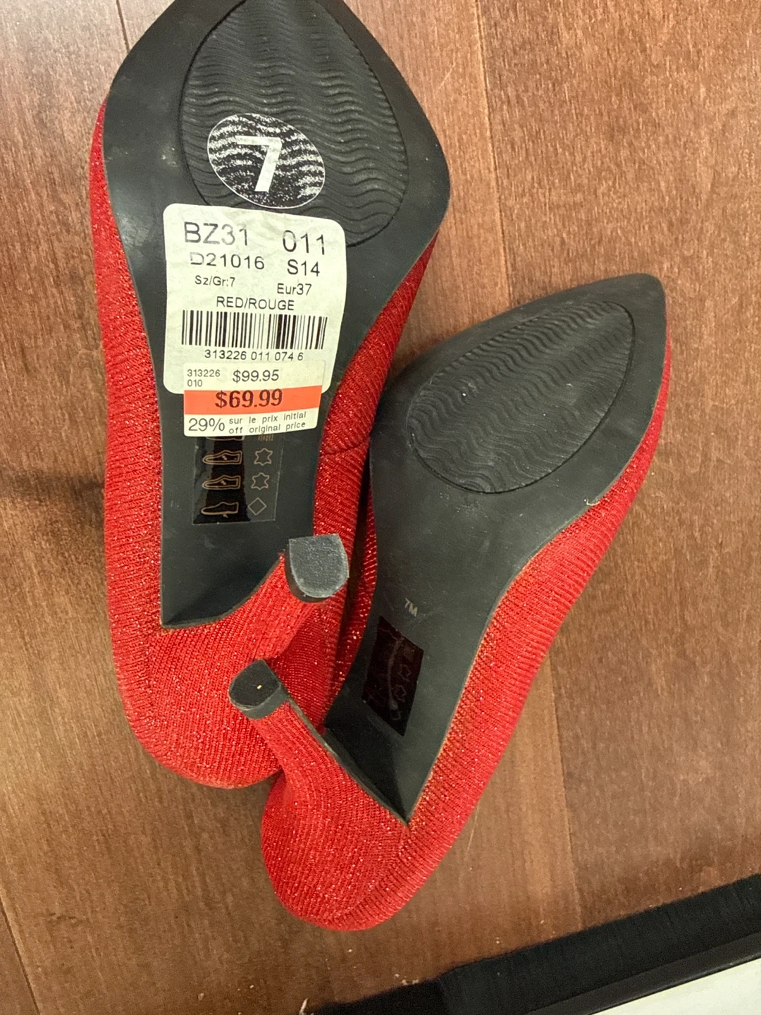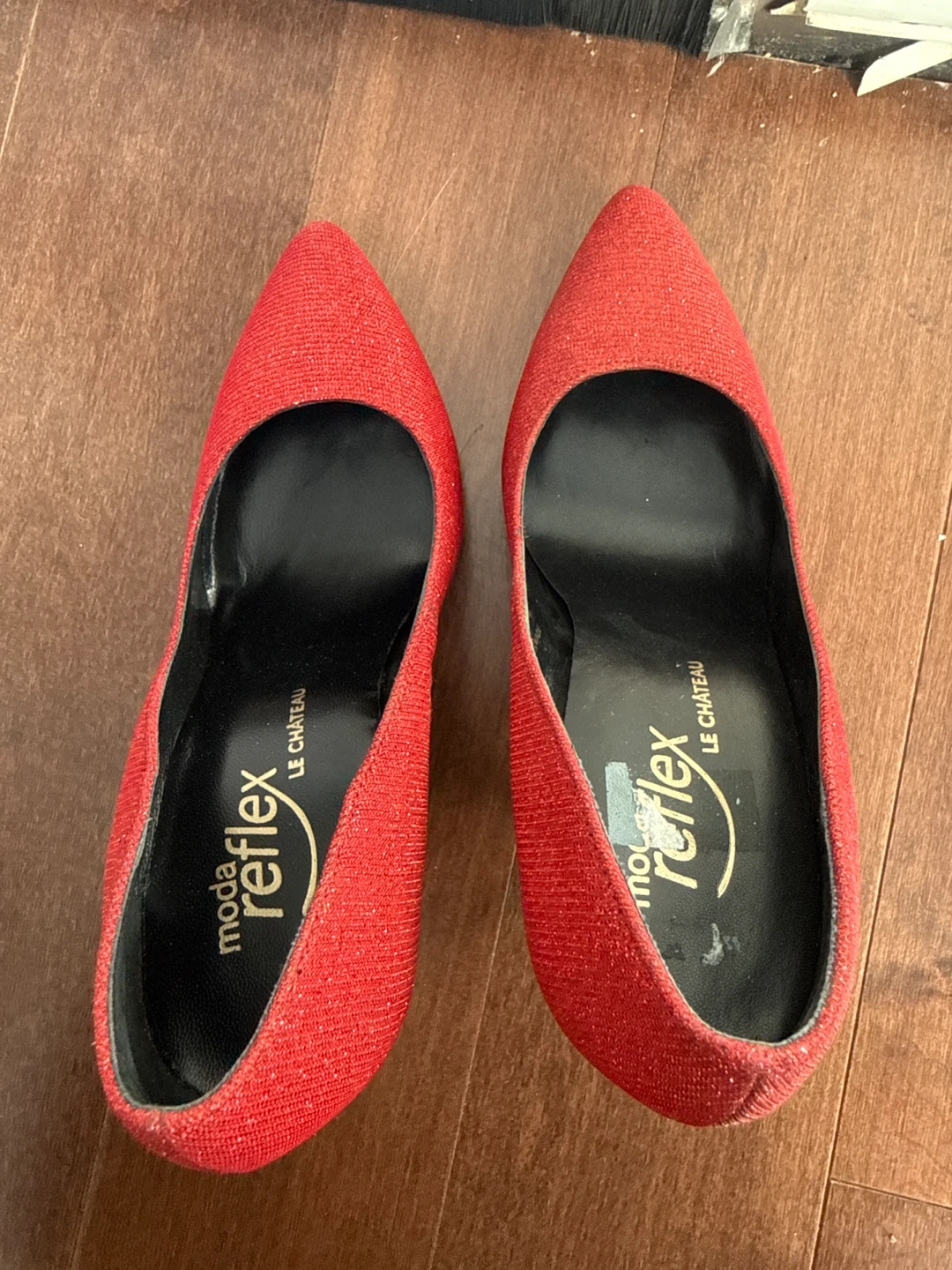 These are Moda Reflex Le Chateau heels in a beautiful red colour! They are a size 7 and in good condition. The original price was $99.95. In a very good condition used once. Pickup location is 6210 Yonge street in North York!