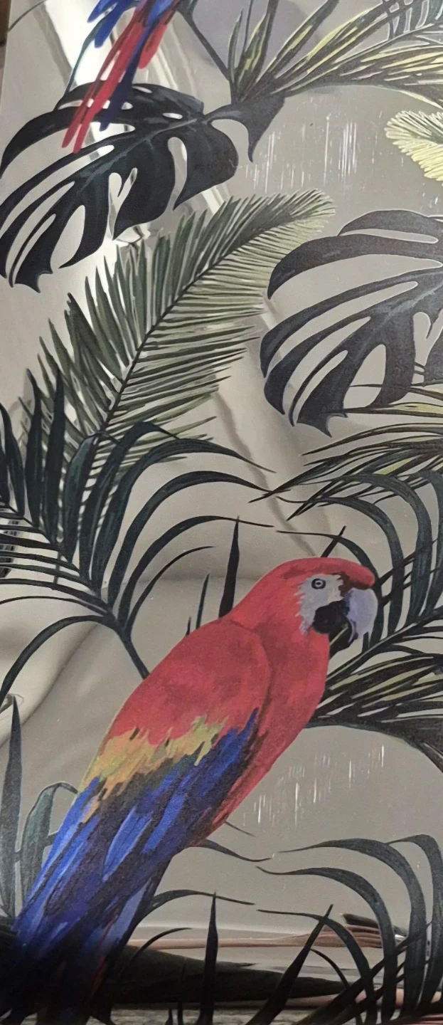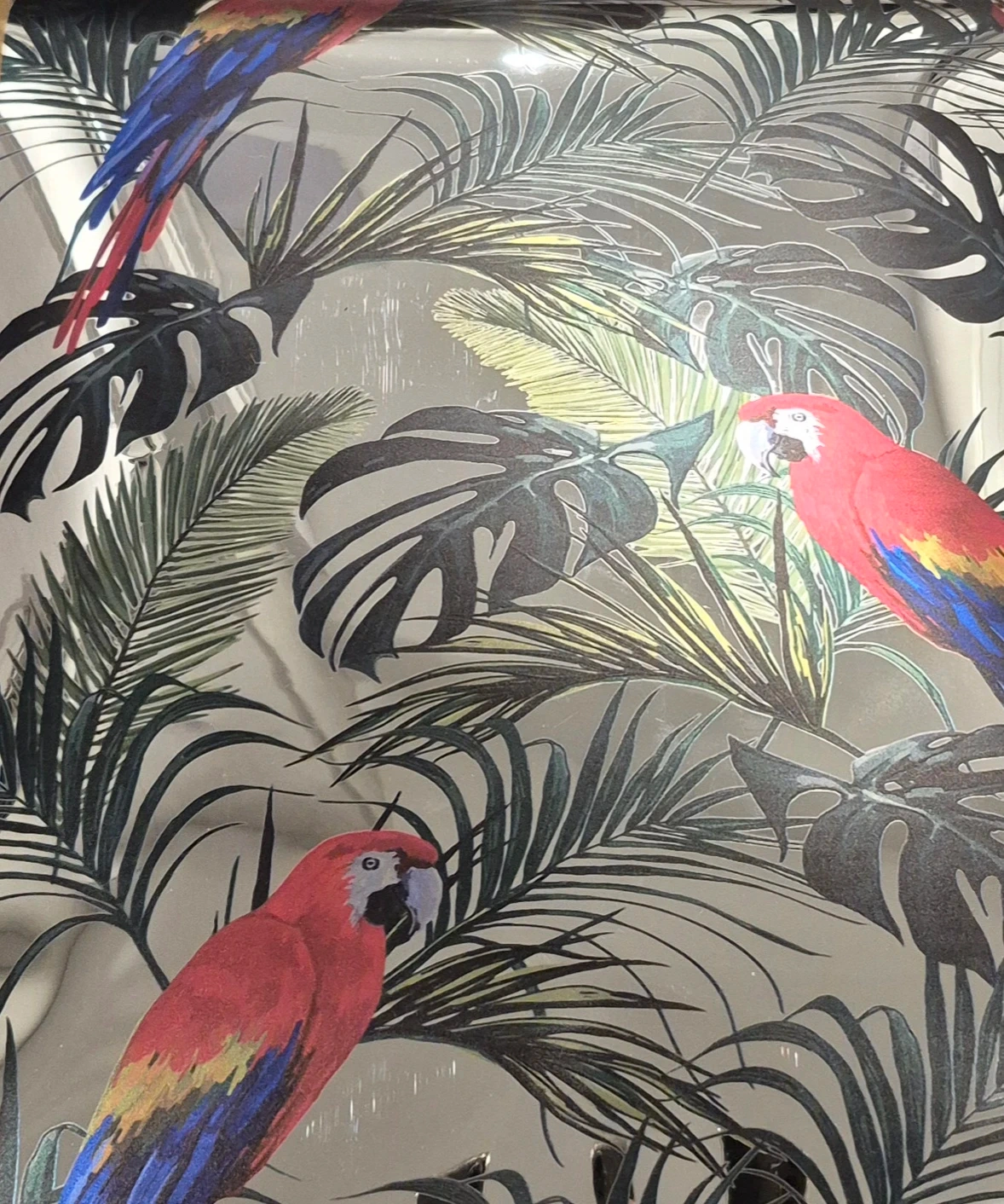 Foil Mirrored Reflective Peel & Stick Wall Sticker. 15.35"x47.24". New. Parrot design. Perfect for adding a decorative touch to clean, smooth, and dry surfaces like cabinets and display cases.