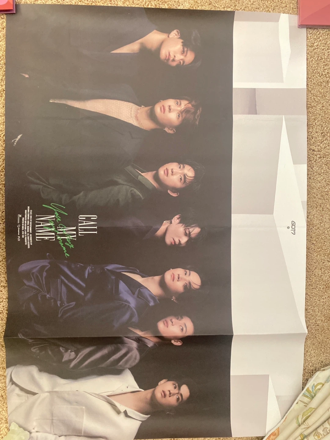 Selling a GOT7 "Call My Name" poster. It's in good condition and ready to be displayed! Includes all members of the group. Perfect for any fan looking to add to their collection.