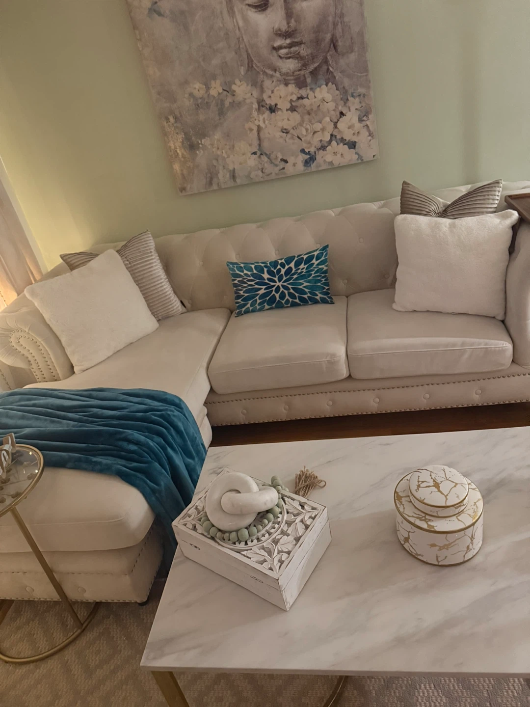 Selling a comfy and stylish white sectional sofa! It's in great shape and would look lovely in any living room. Perfect for lounging and adding a touch of elegance to your space. Feel free to reach out if you're interested!