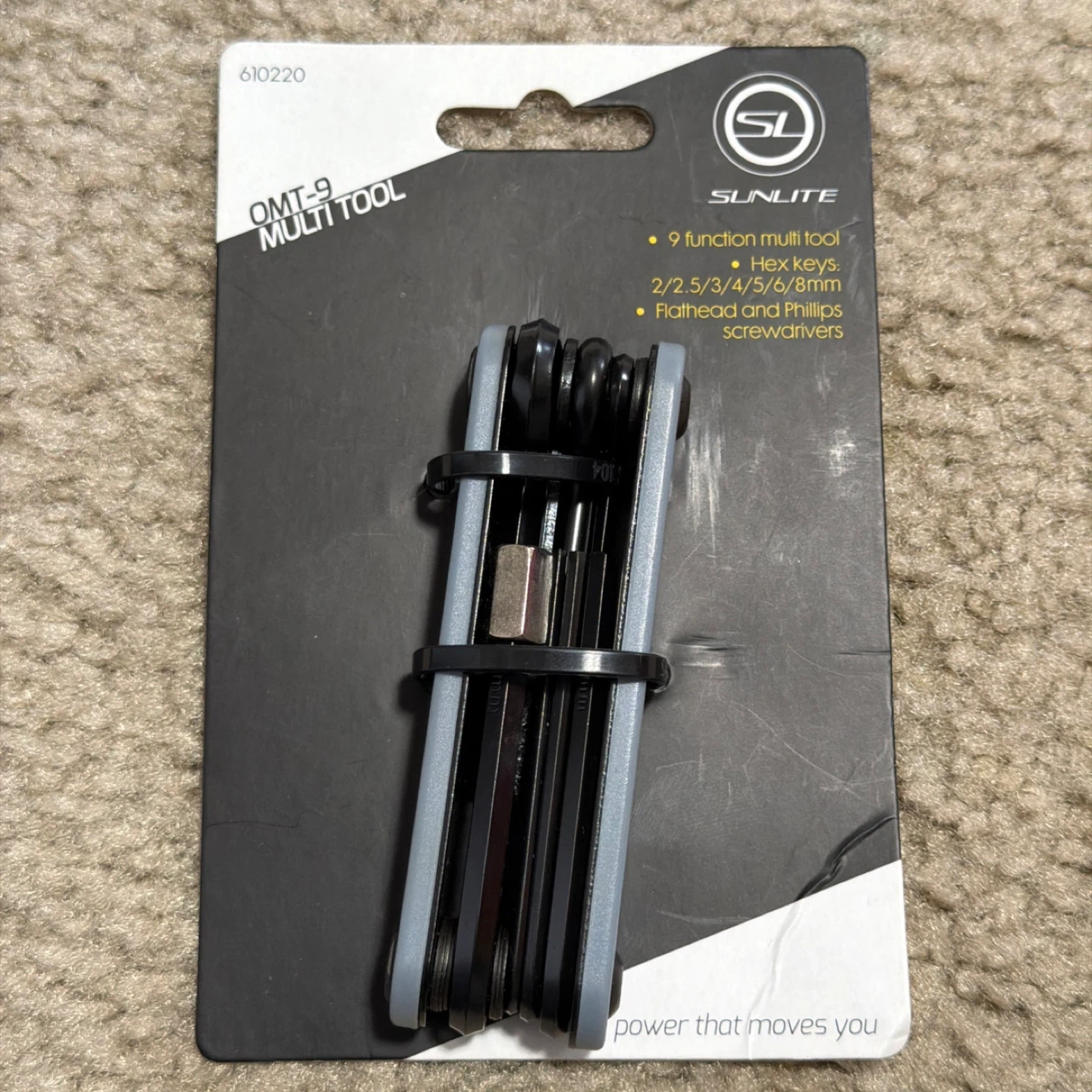 I'm selling a brand new Sunlite OMT-9 Multi Tool! It's a 9-function multi tool with hex keys (2/2.5/3/4/5/6/8mm) and flathead and Phillips screwdrivers