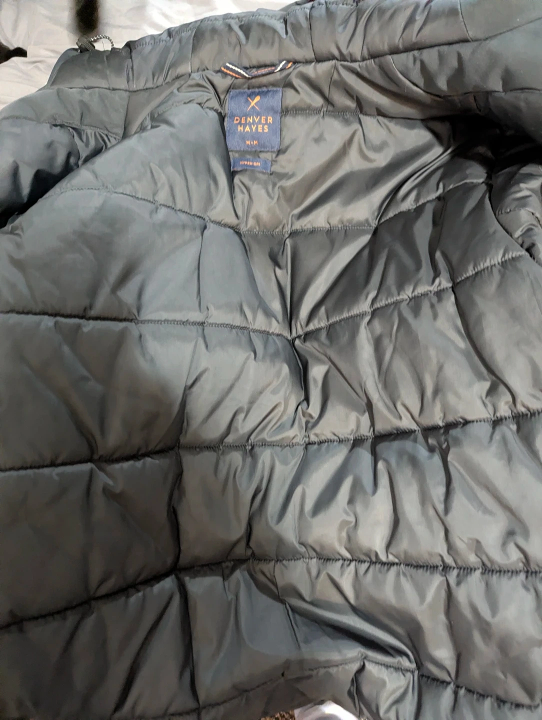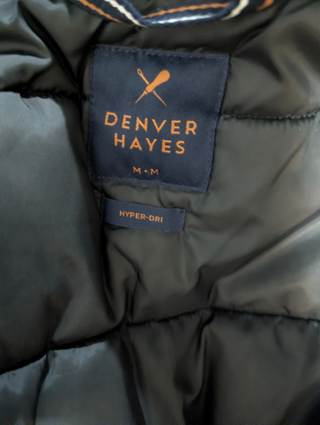Denver Hayes Hyper-Dri puffer coat in size medium! It's a stylish and functional coat perfect for keeping warm and dry. The coat is in great condition and ready for a new owner.