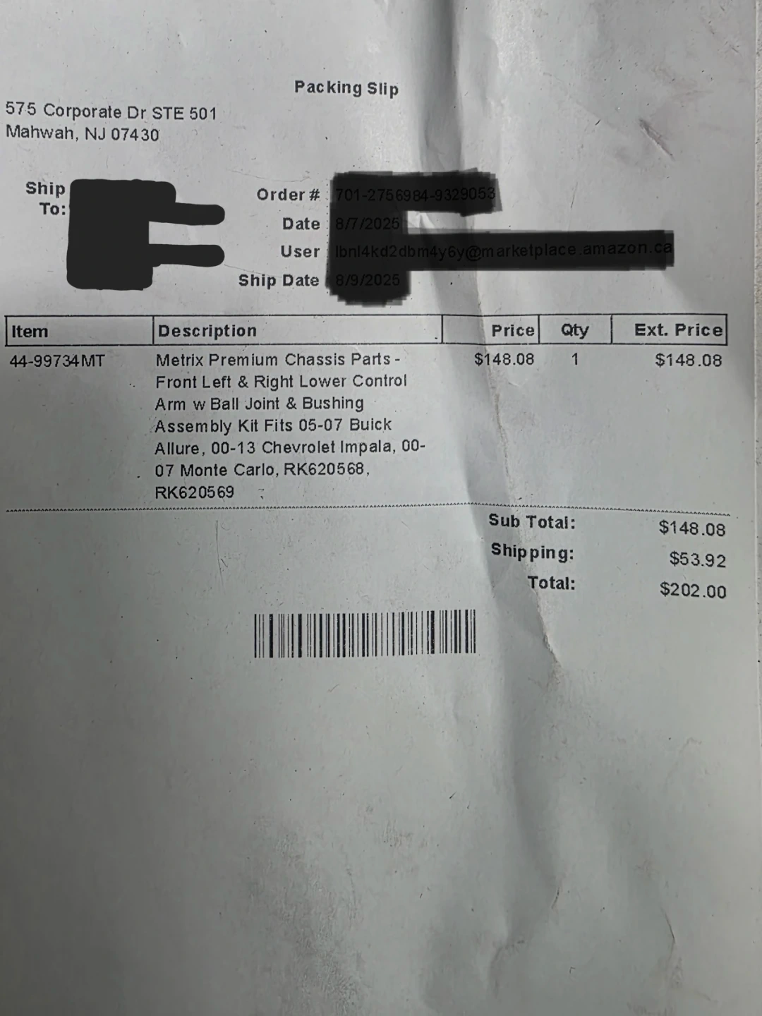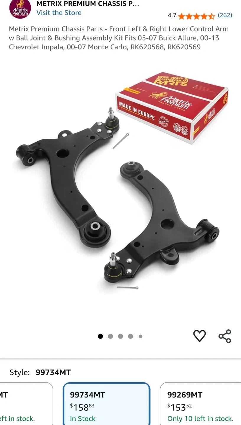 It is brand new, doesn't fit my car and never used. You can ask me for more details. Front Left & Right Lower Control Arm with Ball Joint & Bushing Assembly Kit.