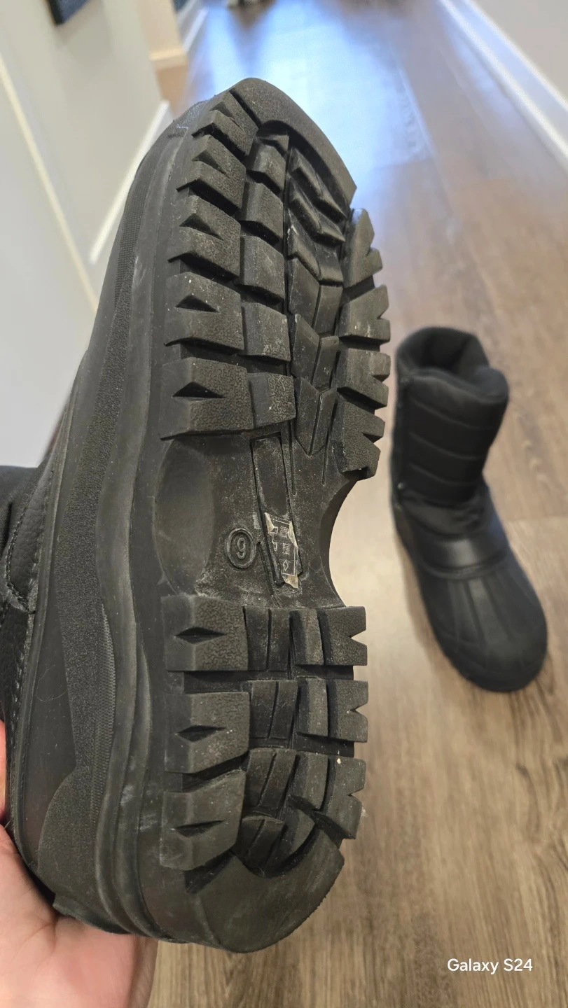 Selling a pair of Men's black winter boots in size 9. They feature 3M Thinsulate insulation to keep your feet warm and dry. They are water resistant and in excellent condition! Purchased at ShoeCo.