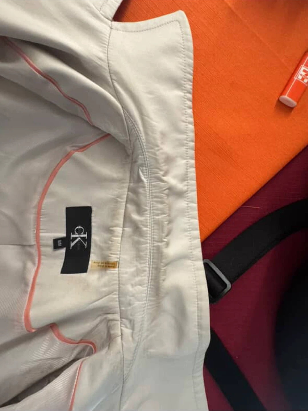 Selling a Calvin Klein trench coat in a lovely beige colour. It's a size medium and in great condition. There’s some small staining and tears (in the photos).