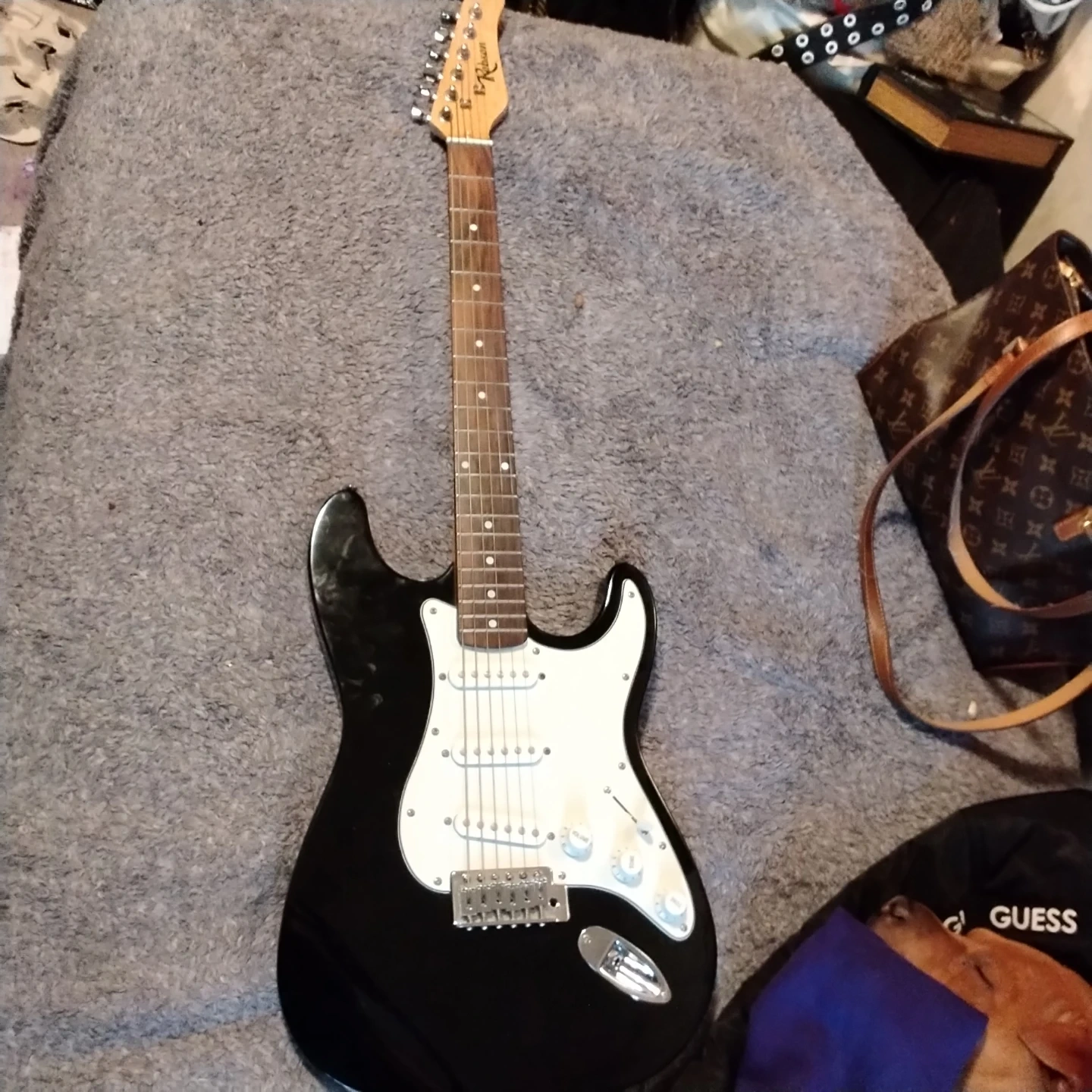 Selling a Robson electric guitar in a classic black Strat style. It's in good condition and ready to play! Perfect for beginners or anyone looking for a reliable electric guitar.