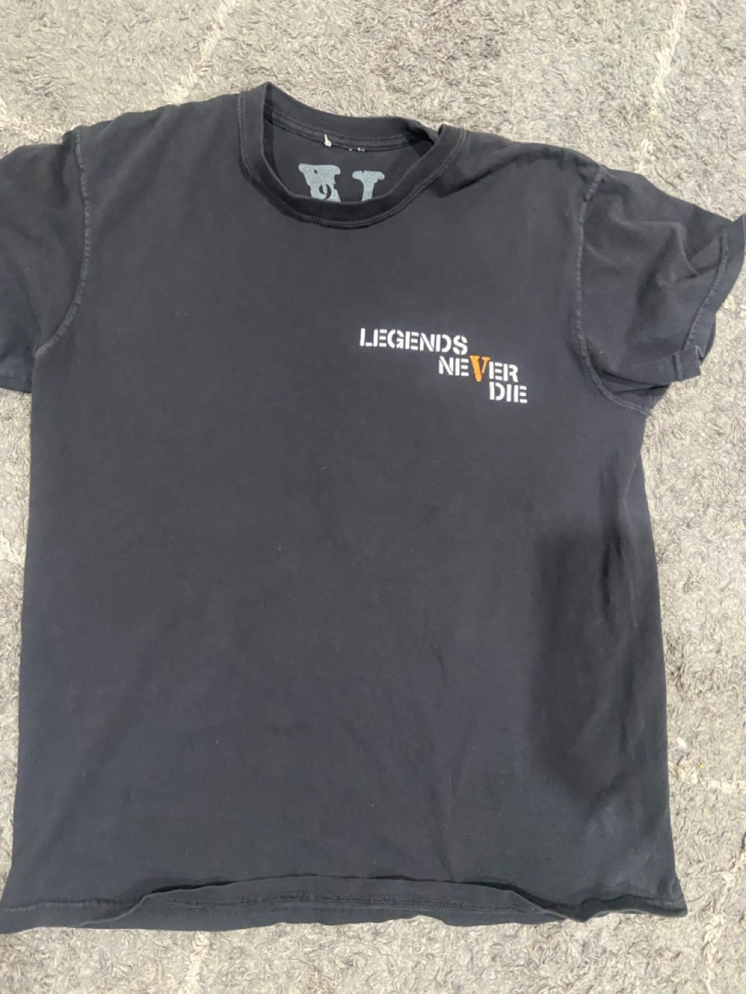 Selling a Vlone x Juice Wrld "Legends Never Die" T-shirt. It's in good condition with a cool design on the front and back. The shirt is black with orange accents!