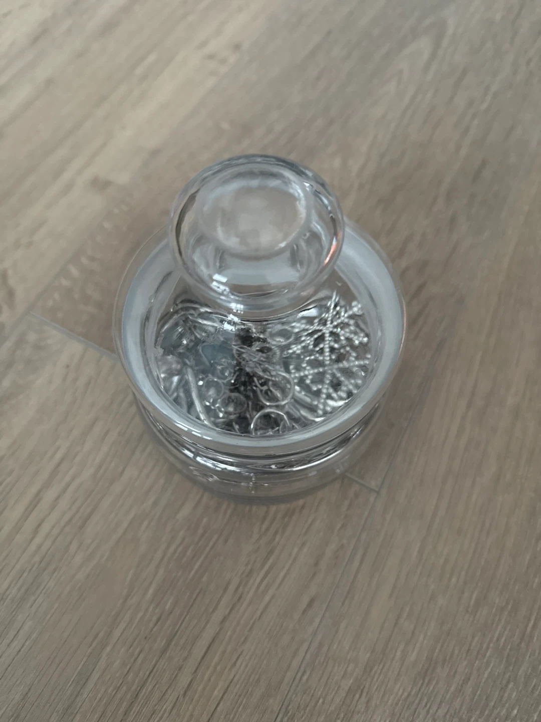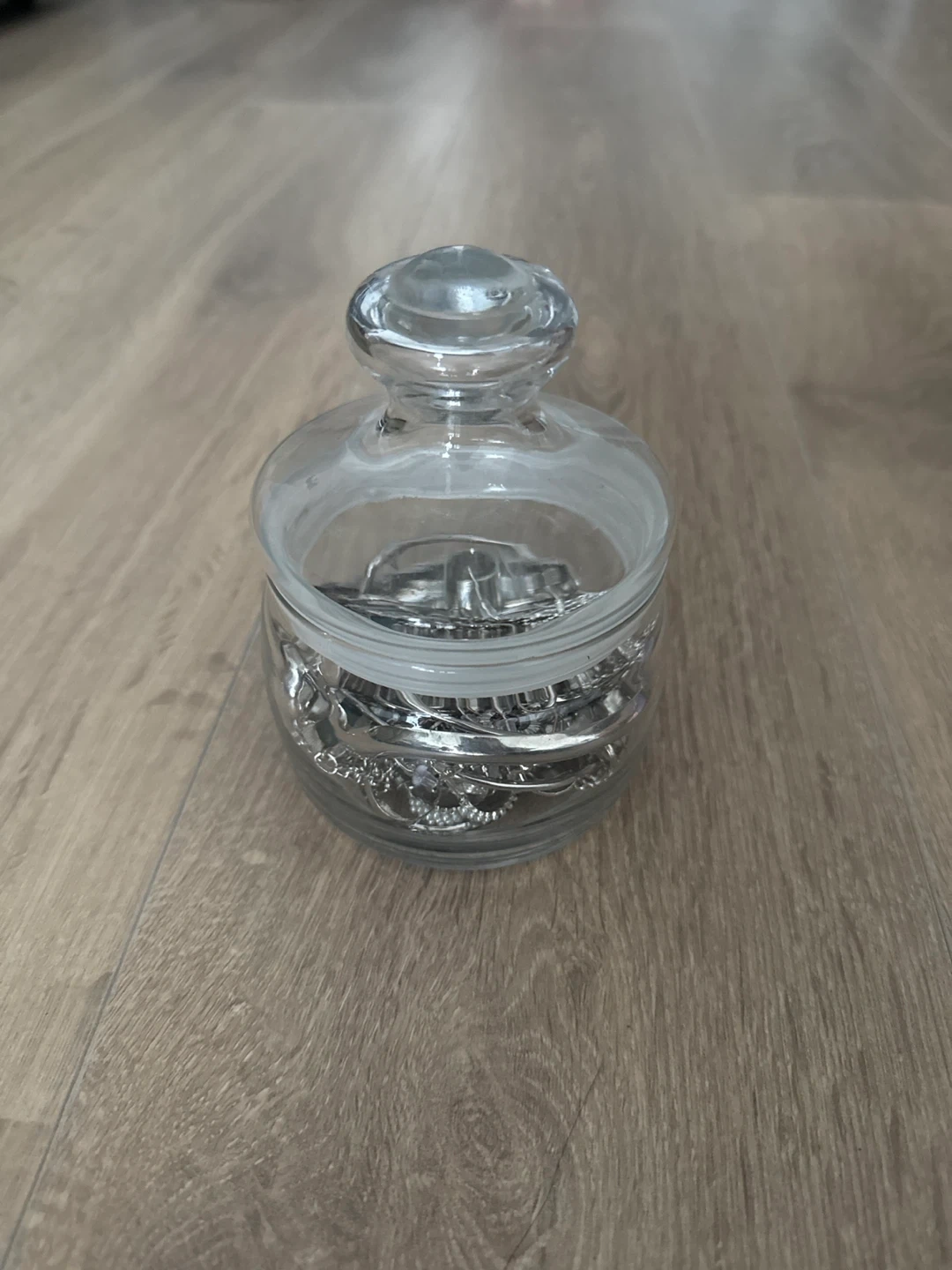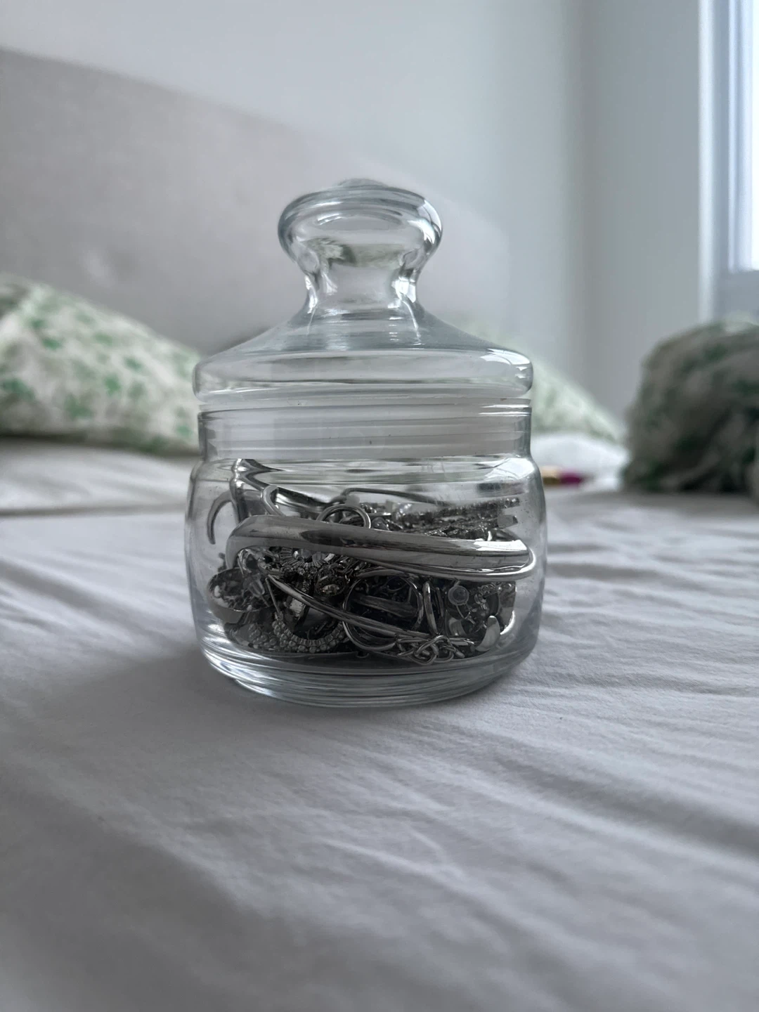 Selling a jar filled with assorted silver jewellery! There's a variety of necklaces, chains, bracelets, and earrings inside. Perfect for someone looking to add to their collection or start a new one. It's all in great condition and ready for a new home!