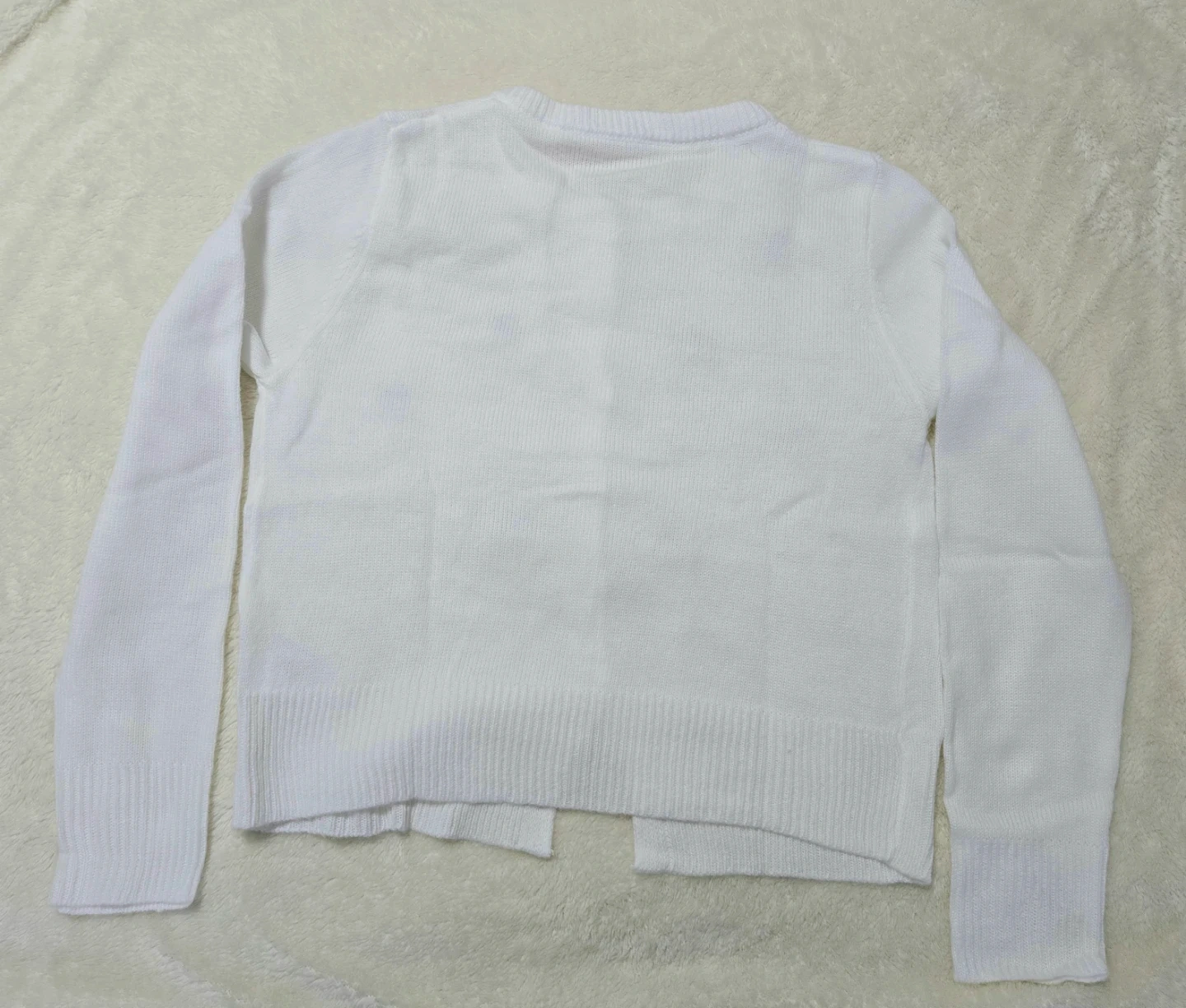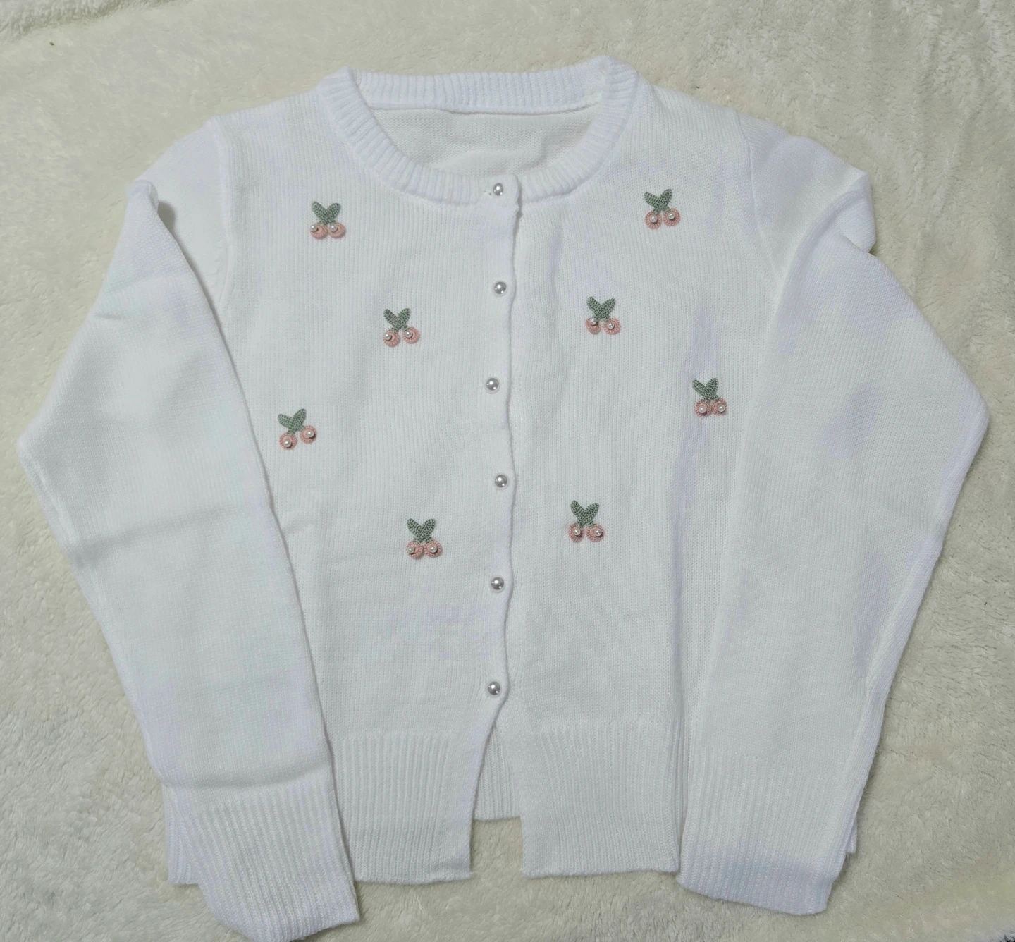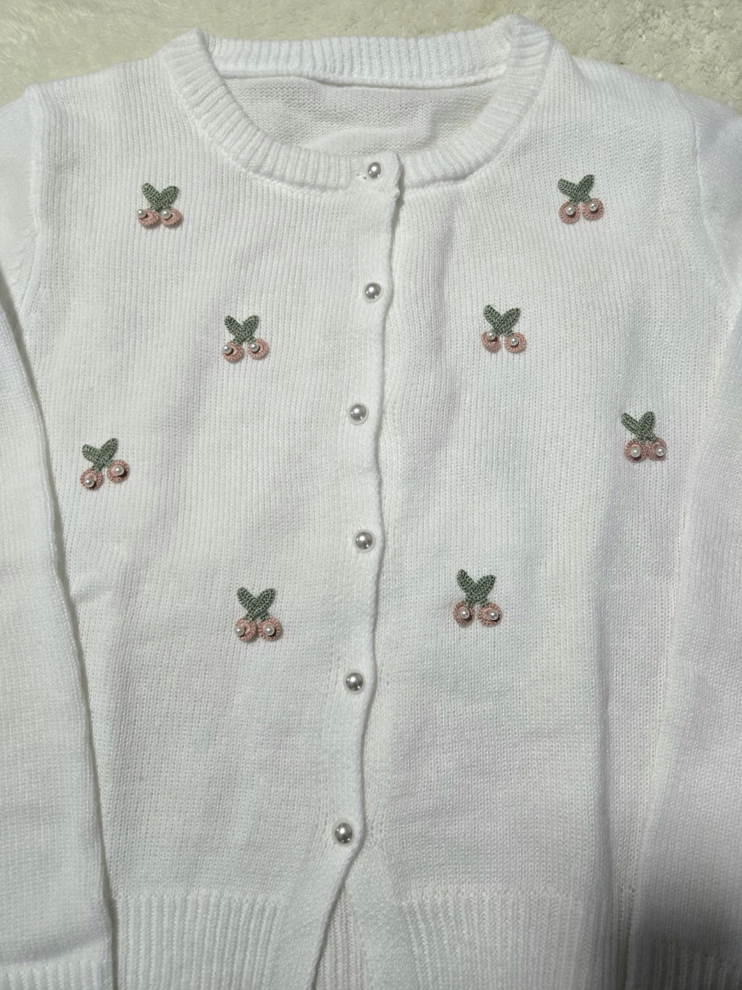 Beautiful and cozy button-up sweater cardigan with cute pink butterfly embroidery.