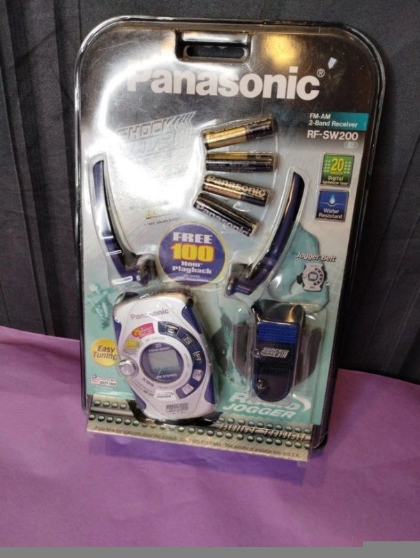 Brand new in the original packaging. Due to the age of the product, the batteries inside are corroded but don't affect the radio. Comes with Jogger Belt and is water resistant with 20 digital presets. This Panasonic RF-SW200P-A AM/FM Portable ArmBand Radio is a great choice for music lovers who are always on the go. It comes with a durable armband that keeps the radio secure to your arm while you're out and about. The radio has a sleek design and is lightweight, making it easy to carry with you wherever you go. With a brand like Panasonic, you can expect high-quality sound and reliable performance. This radio is perfect for listening to music or catching up on the latest news while you're out for a run or walking around town.
