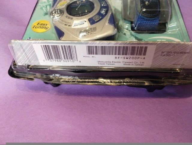 Brand new in the original packaging. Due to the age of the product, the batteries inside are corroded but don't affect the radio. Comes with Jogger Belt and is water resistant with 20 digital presets. This Panasonic RF-SW200P-A AM/FM Portable ArmBand Radio is a great choice for music lovers who are always on the go. It comes with a durable armband that keeps the radio secure to your arm while you're out and about. The radio has a sleek design and is lightweight, making it easy to carry with you wherever you go. With a brand like Panasonic, you can expect high-quality sound and reliable performance. This radio is perfect for listening to music or catching up on the latest news while you're out for a run or walking around town.