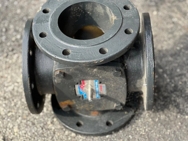 ESBE 4 WAY MIXING VALVE Model #: DN 125 PN6 CAST IRON 4 7/8" FLANGE OPENING Series 4F are 4-way valves with flange connection PN6 suitable for double mixing operation up to 6 bar. The valves are made of high-performing cast iron allowing use in heating and cooling installations. The 4F series is available in DN20-150 and comes with a PN6 flange to suit PN6 flange pipe dimensions. The Valve is perfectly combined with ESBE actuators and controllers. Has some minor paint chips and is missing the small handle. Brand new, never used. VIEW MY OTHER ADS!!!