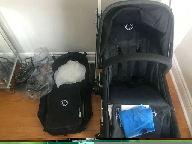 Bugaboo Cameleon Stroller, LIMITED EDITION Denim 007 Excellent condition, smoke and pet free home. Well taken care of. Final Sale. Bugaboo's second generation Cameleon, the Cameleon2 or Cameleon+ has all the features the brand is renowned for: timeless style and ergonomic brilliance. The Cameleon2 features an adjustable, reversible handlebar system with clips, foam filled tyres, padded harness and improved carry handle knobs compared to its predecessor, the first generation Cameleon. Can be used from birth, the lie-flat bassinet can be replaced by a seat unit with 3-recline positions, lockable wheels (air filled tires and adjustable suspension.) What is included Bassinet Chassis Rain cover Netting for Mosquitoes Machine washable fabrics everything in the pictures is included adaptor clips pneuamatic pump