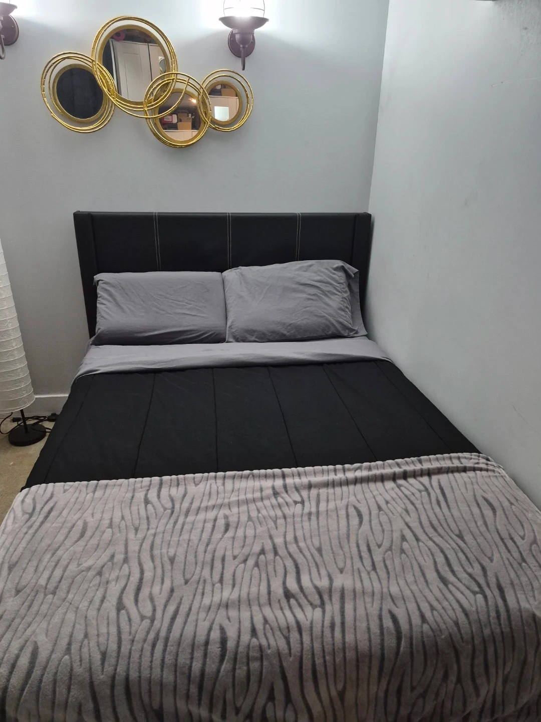 Selling a double size mattress with a bamboo cover plus headboard! It's in great condition and super comfy. Perfect for a good night's sleep.