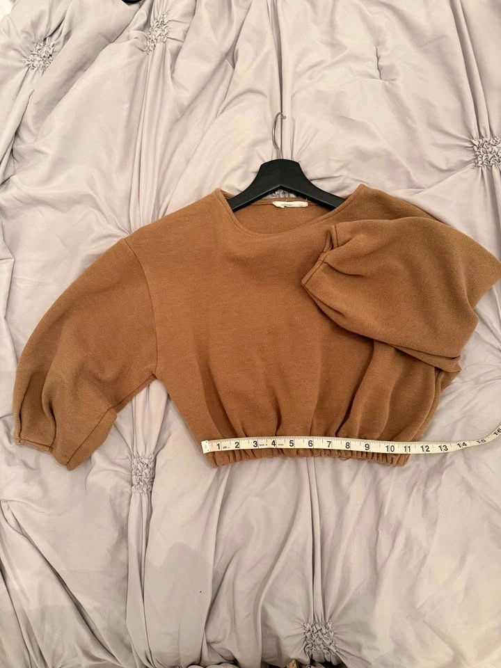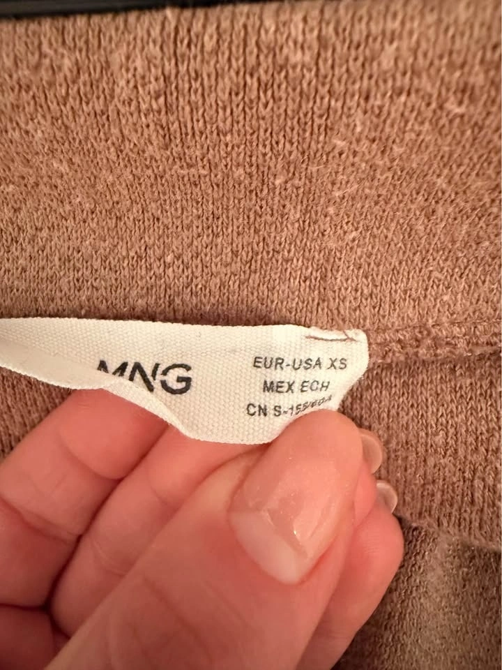 Mango (MNG) matching camel lounge set in like-new condition (5/5). Cropped long-sleeve top with an elastic hem for a flattering fit + comfy matching pants—perfect for cozy days, travel, or casual outings.