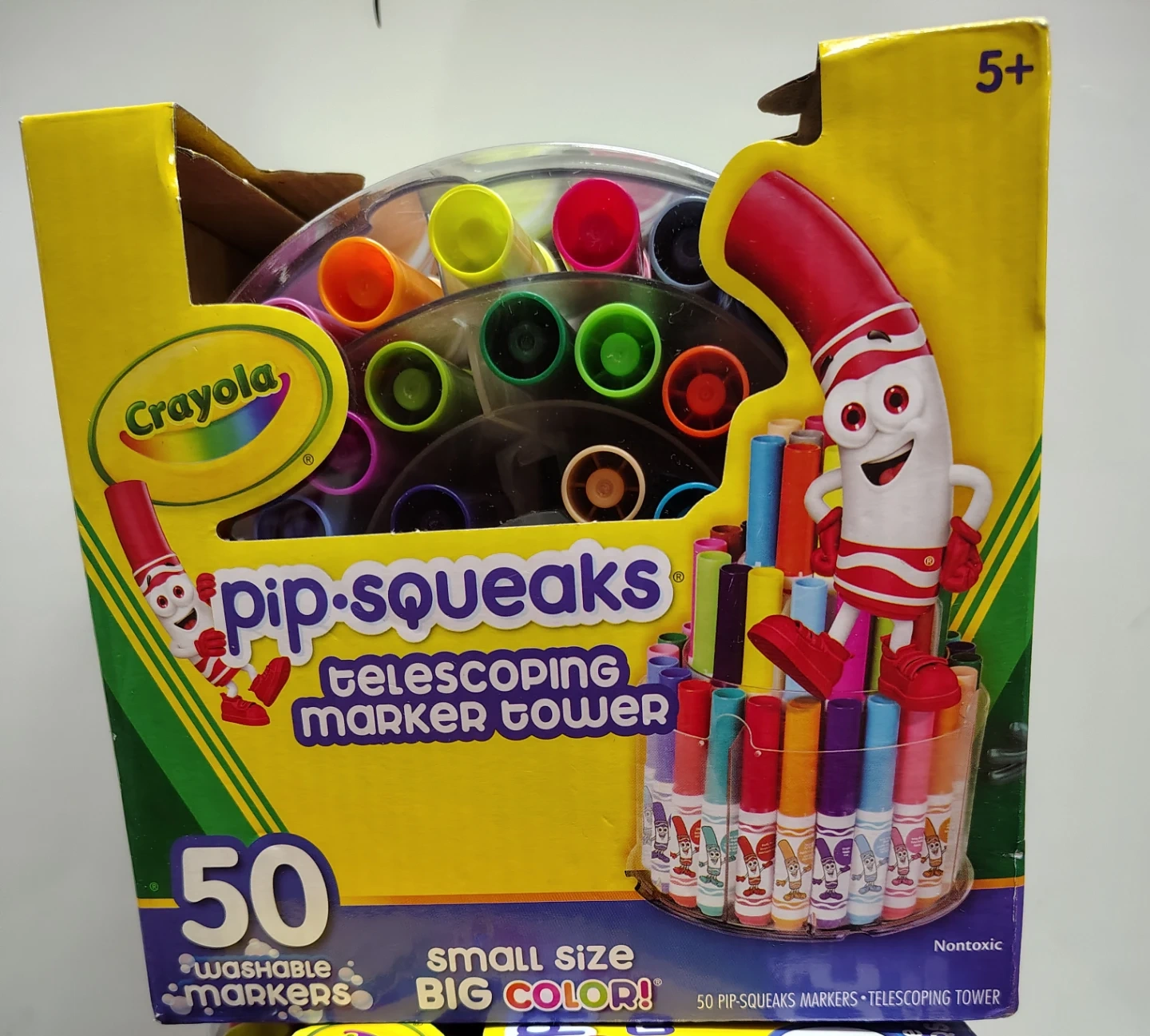 Selling a Crayola Pip-Squeaks Telescoping Marker Tower! It comes with 50 washable markers in a variety of colors. This small-size set is perfect for unleashing big color and creativity. The telescoping tower design makes it fun and easy to access all the markers. Great for kids aged 5 and up!