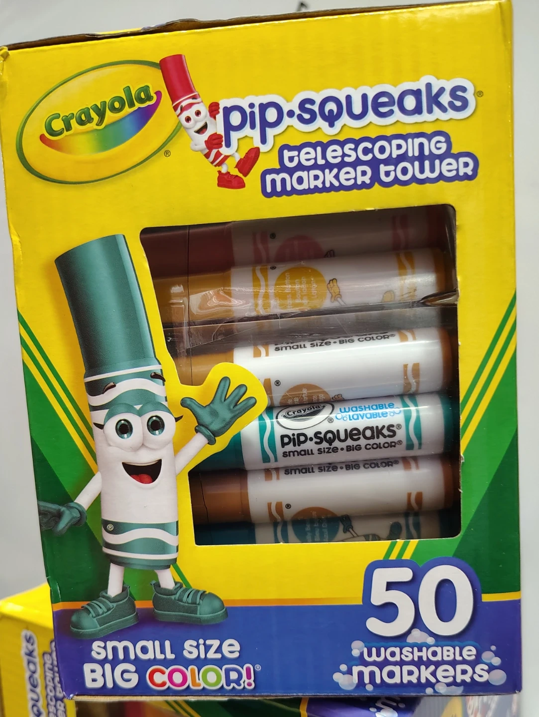 Selling a Crayola Pip-Squeaks Telescoping Marker Tower! It comes with 50 washable markers in a variety of colors. This small-size set is perfect for unleashing big color and creativity. The telescoping tower design makes it fun and easy to access all the markers. Great for kids aged 5 and up!