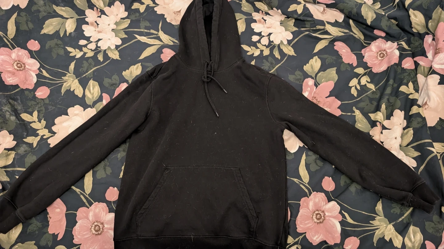 Selling a black H&M hoodie in size small. It's in good condition and ready for a new owner!