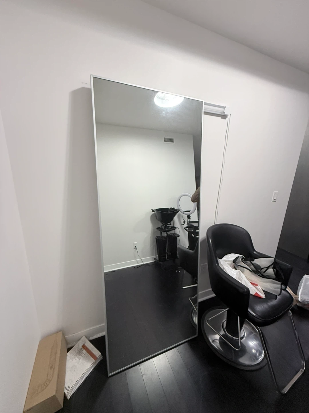 Selling a large mirror, perfect for a salon or studio space! It's in great condition and ready to be installed. It's a great addition to any space that needs a large mirror!