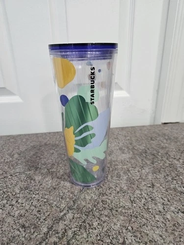 Elevate your morning routine with the Starbucks 2020 Summer 24 oz Blue Green Leaf Clear Tumbler. Let me know if you're interested!