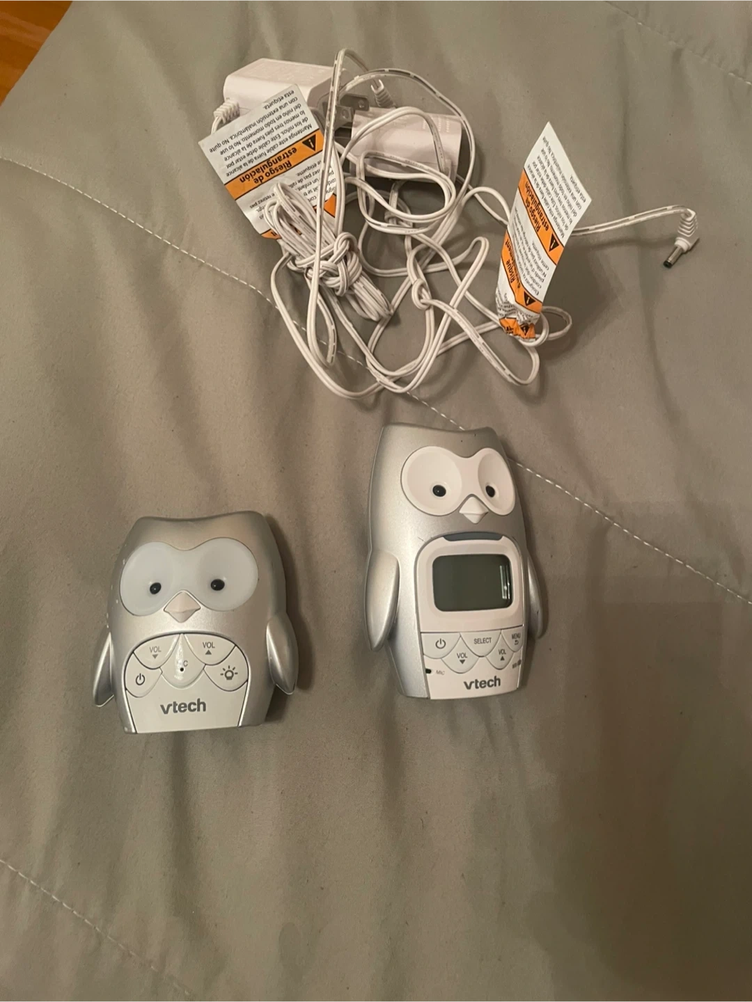 Selling a VTech baby monitor with a cute owl design! It includes the parent unit, baby unit, and the charger. Keep an eye on your little one with this monitor!