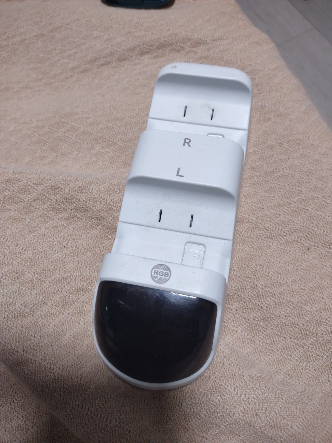 Selling a white controller charger station with RGB. It has spots for two controllers, marked with R and L for easy identification. Perfect for keeping your gaming setup organized!