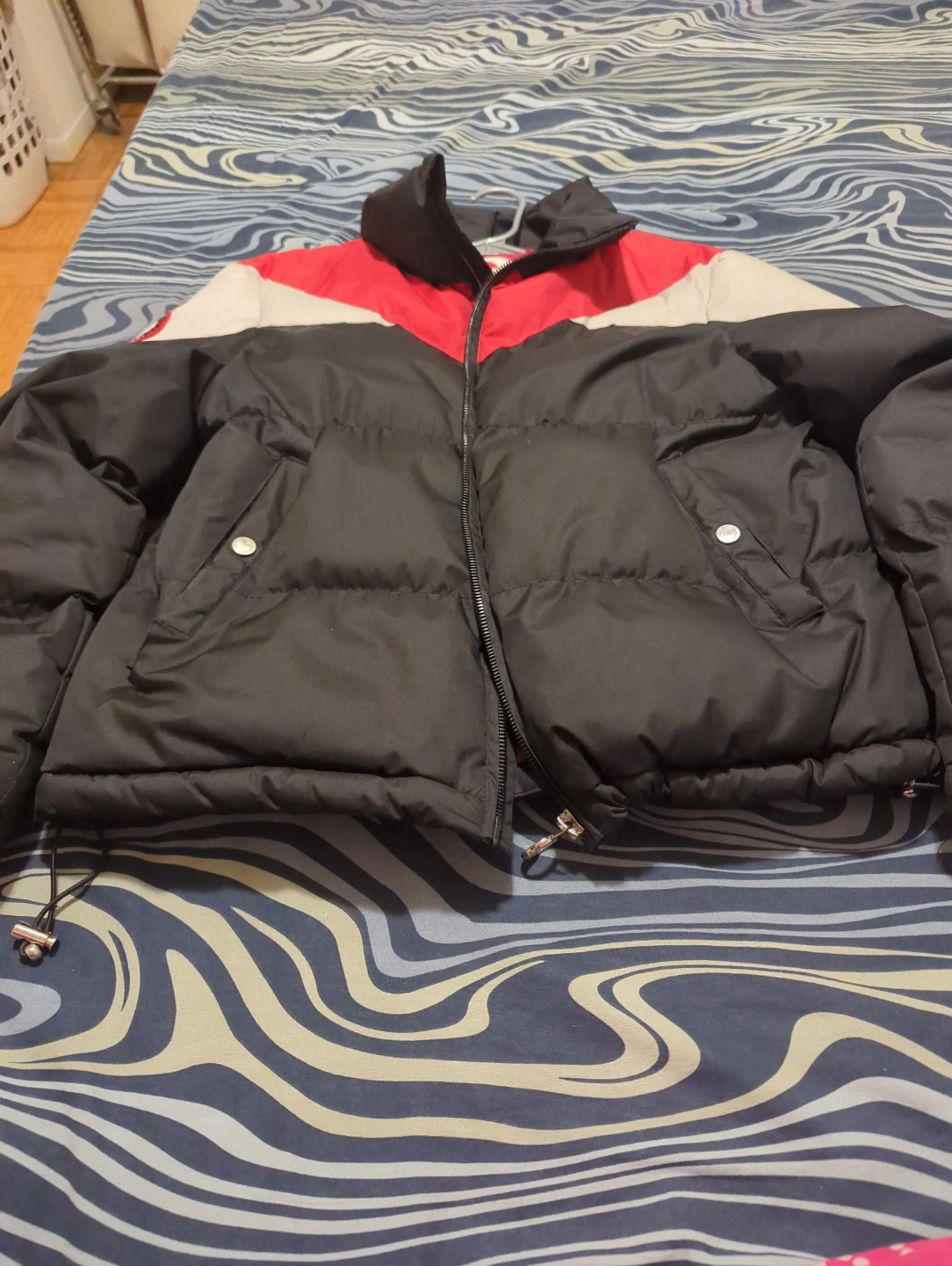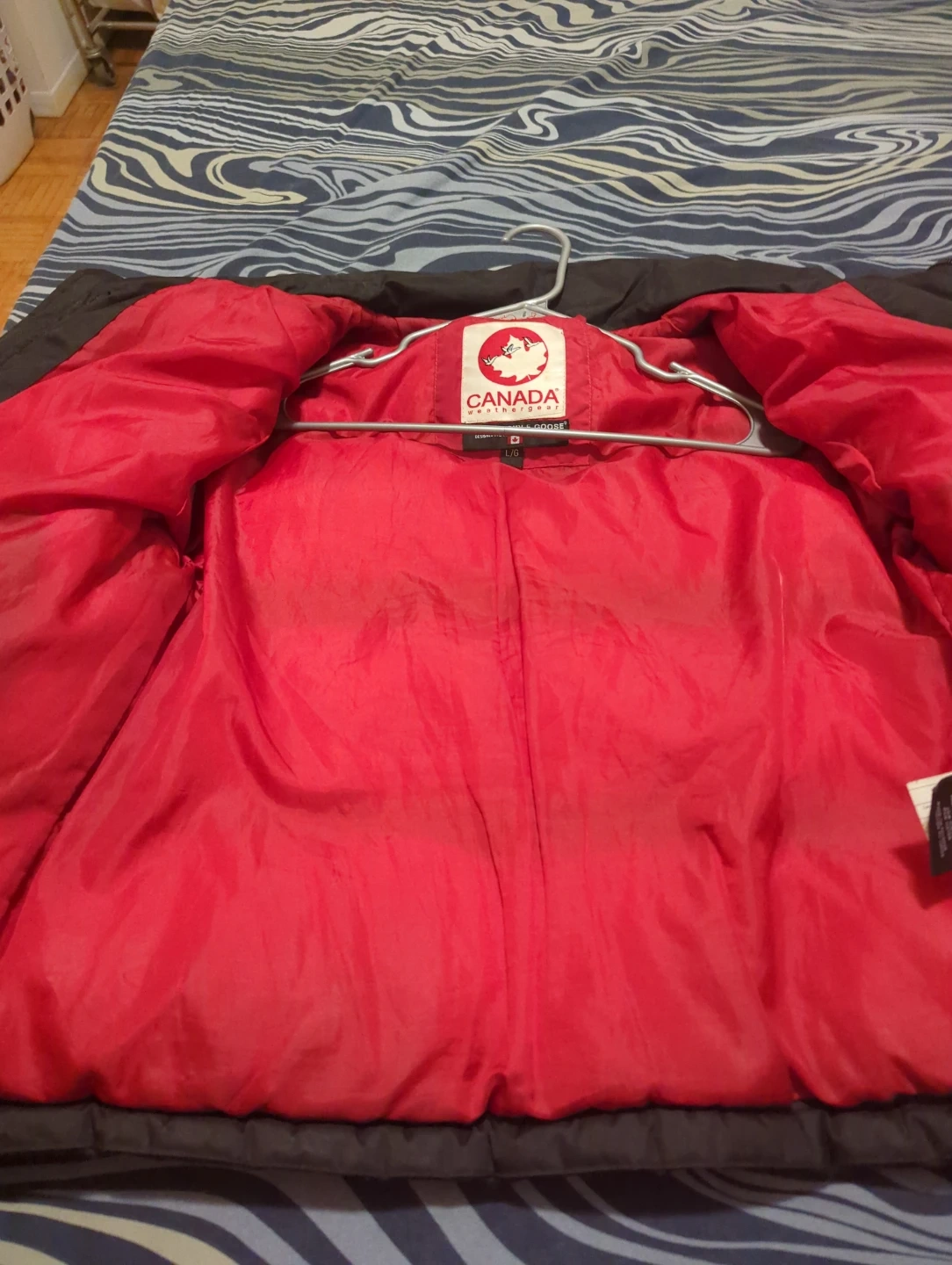Selling a Canada Weathergear Super Triple Goose puffer jacket. It's a size L/G and features a black, red, and white colour scheme. Perfect for staying warm during the colder months!