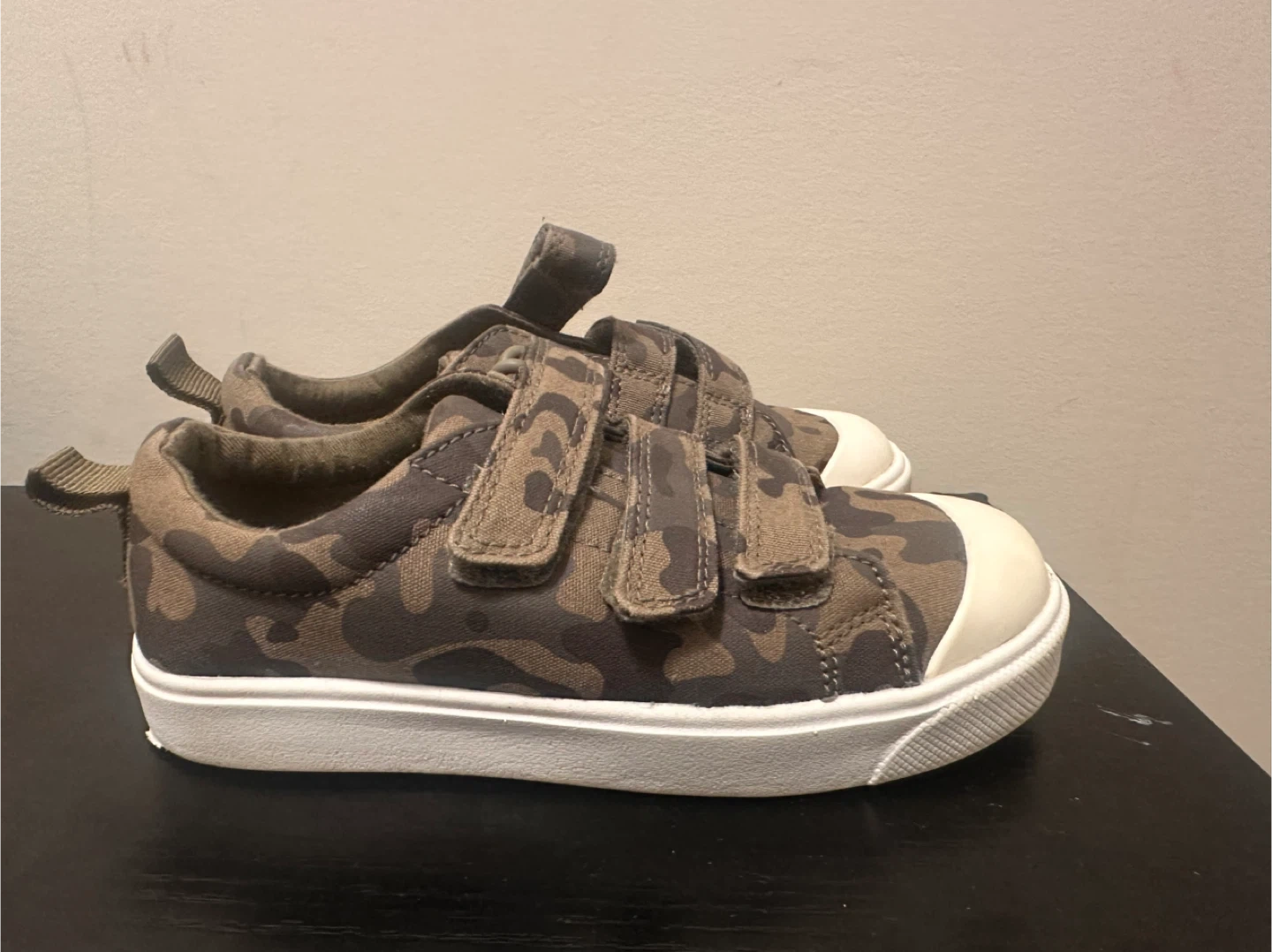 Selling a pair of Clarks kids' sneakers in a cool camo pattern! They're a size 11W (wide). These are in good condition and ready for a new adventure.