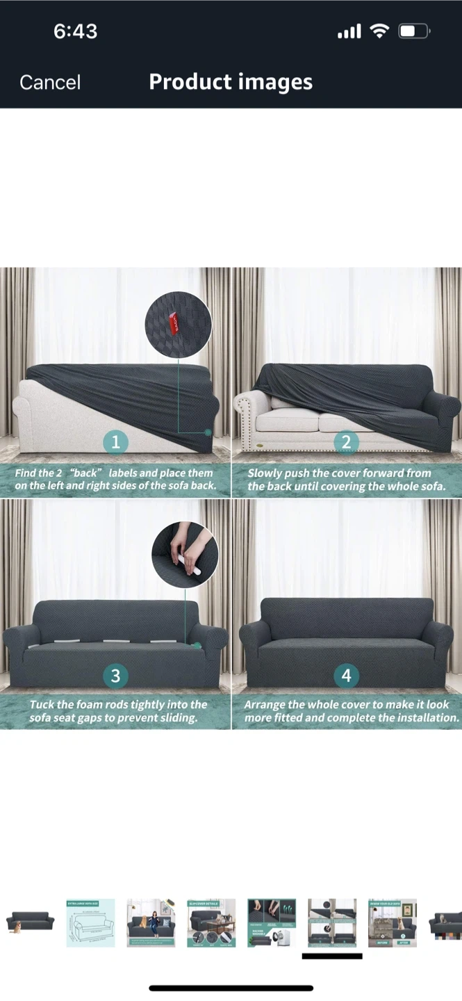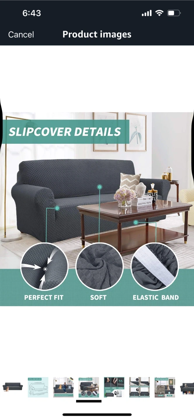 I have a YEMYHOM stretch furniture cover for an XL sofa available. It's grey and made of 85% polyester and 15% spandex. Fits XL sofas 92in to 115in wide (233cm to 292cm). Comes in the original packaging!