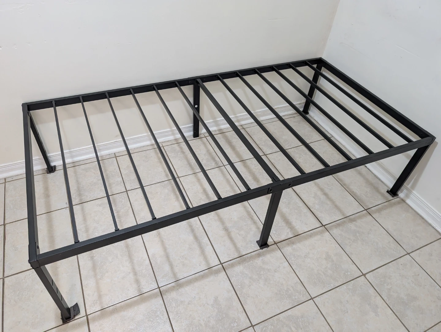 Selling a sturdy black metal bed frame! It's in great shape and ready to support your mattress. Perfect for a single or twin-sized bed. Get in touch if you're interested.