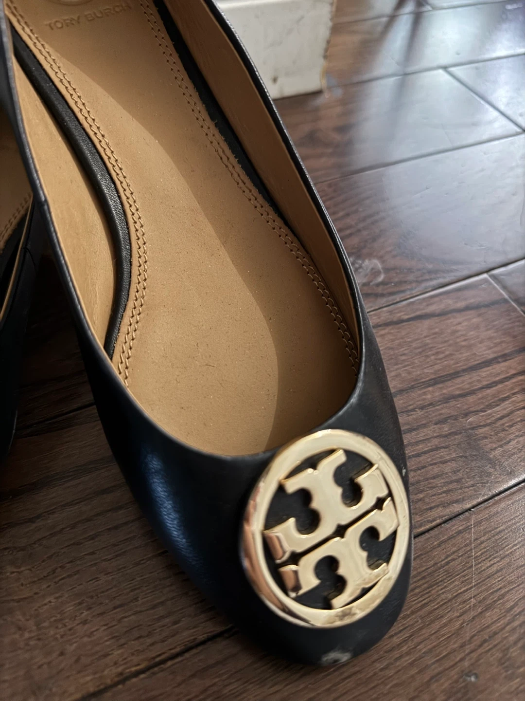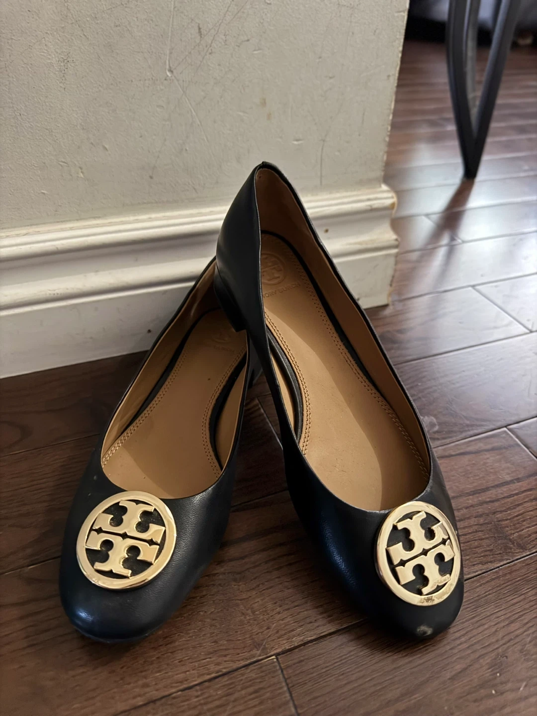 These Tory Burch ballet flats are in great condition! They're black leather with the classic Tory Burch logo in gold. They're perfect for everyday wear or dressing up for a night out.